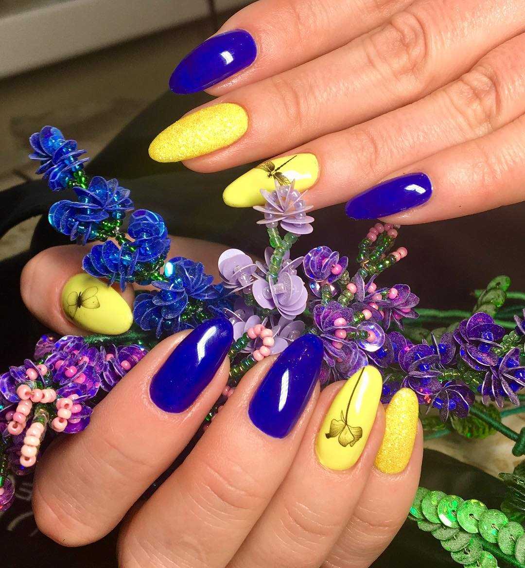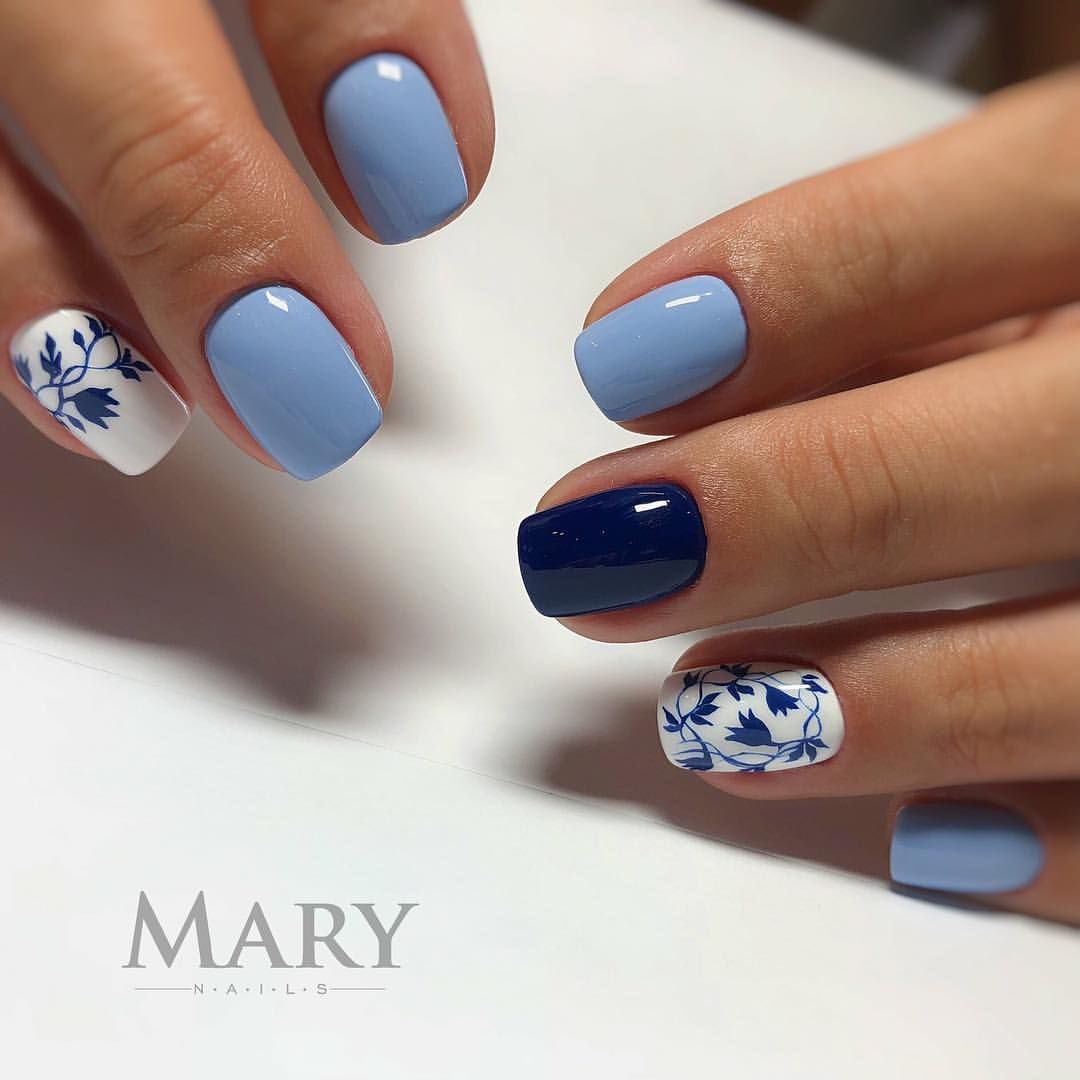 Говоря о сочетании цветов, нельзя не упомянуть о черно-синем маникюре. Этот вариант всегда смотрится по-особенному стильно.