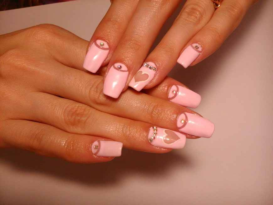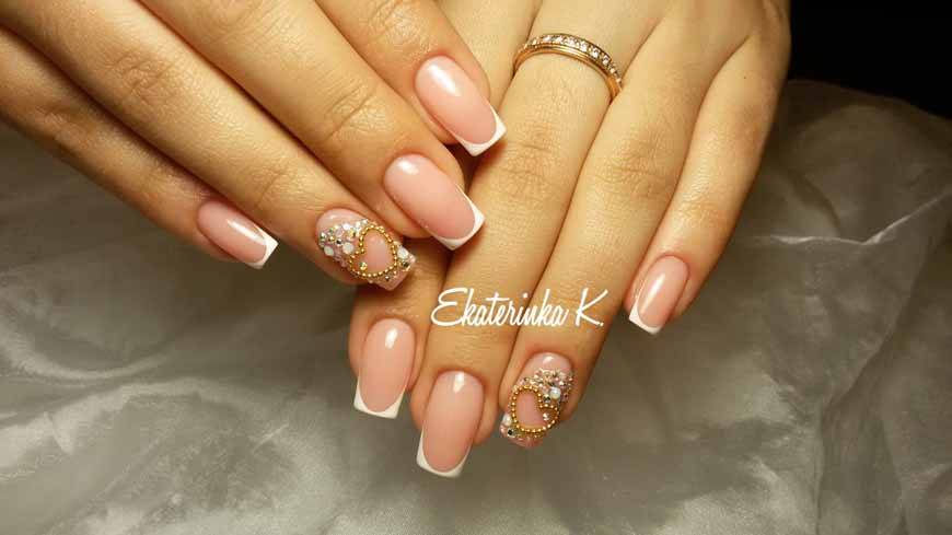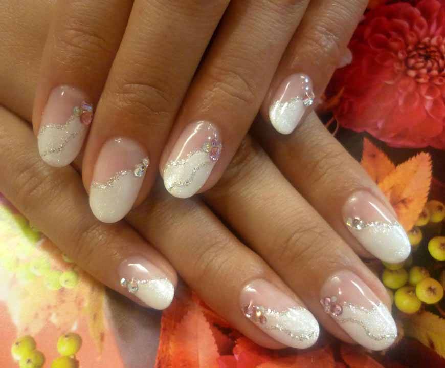 Очень часто нежный маникюр на длинные ноготки делают невесты. Такой маникюр называется свадебным. Для этого торжественного случая на ногти можно положить стразы или блёстки, украсить их акриловой лепкой. Главное знать в этом меру.