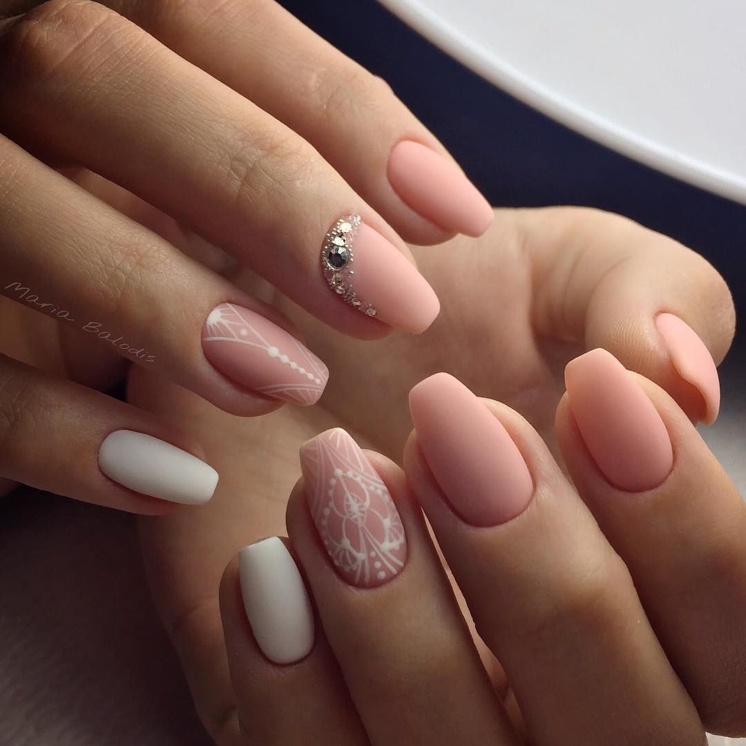 Тем не менее, многие предпочитают добавлять акцент на одном или нескольких ноготках. Это может быть изящное кружево под стать основному наряду. Также часто используется цветочный рисунок, который всегда подчеркивает романтичность и нежность невесты. В целом, можно экспериментировать даже в столь важный день. Лучше выбирать такой рисунок, который вам по душе. Тогда дизайн ногтей точно будет радовать.