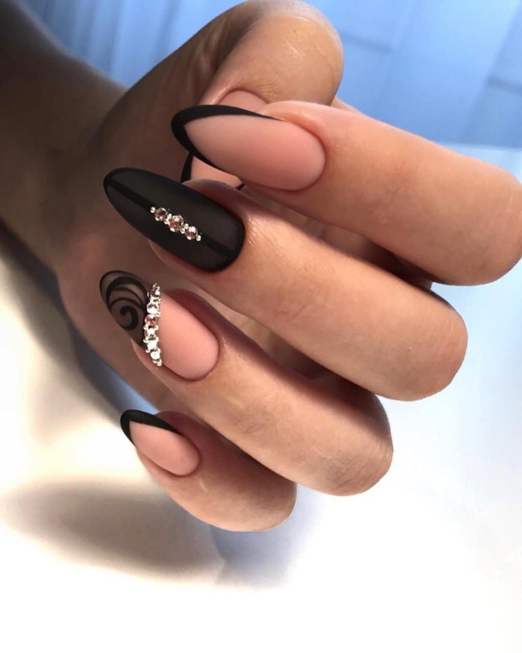 Черный цвет идеально подходит для рисования на ногтиках стильных геометрических фигур. Подобный дизайн нынче на пике популярности.