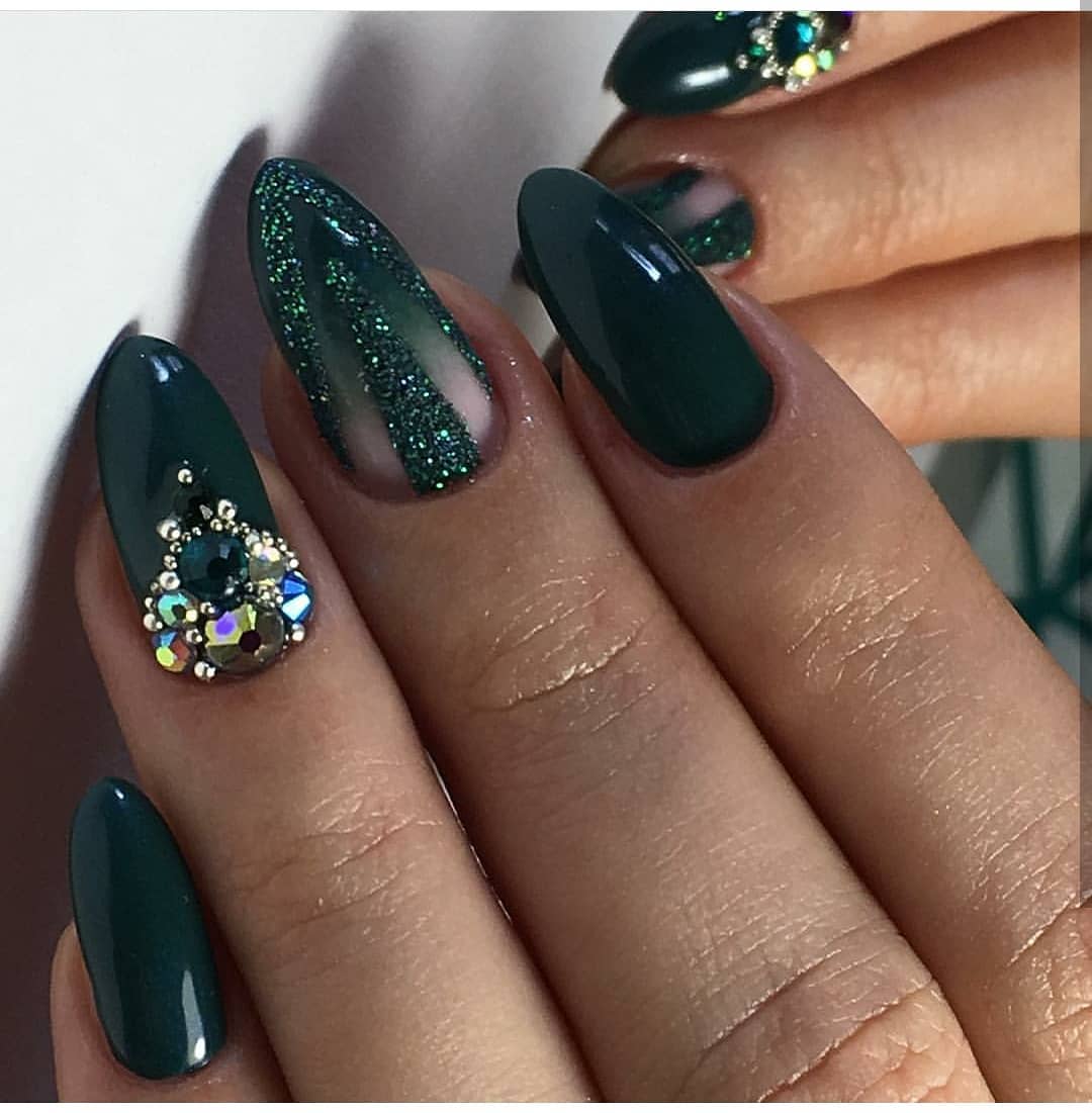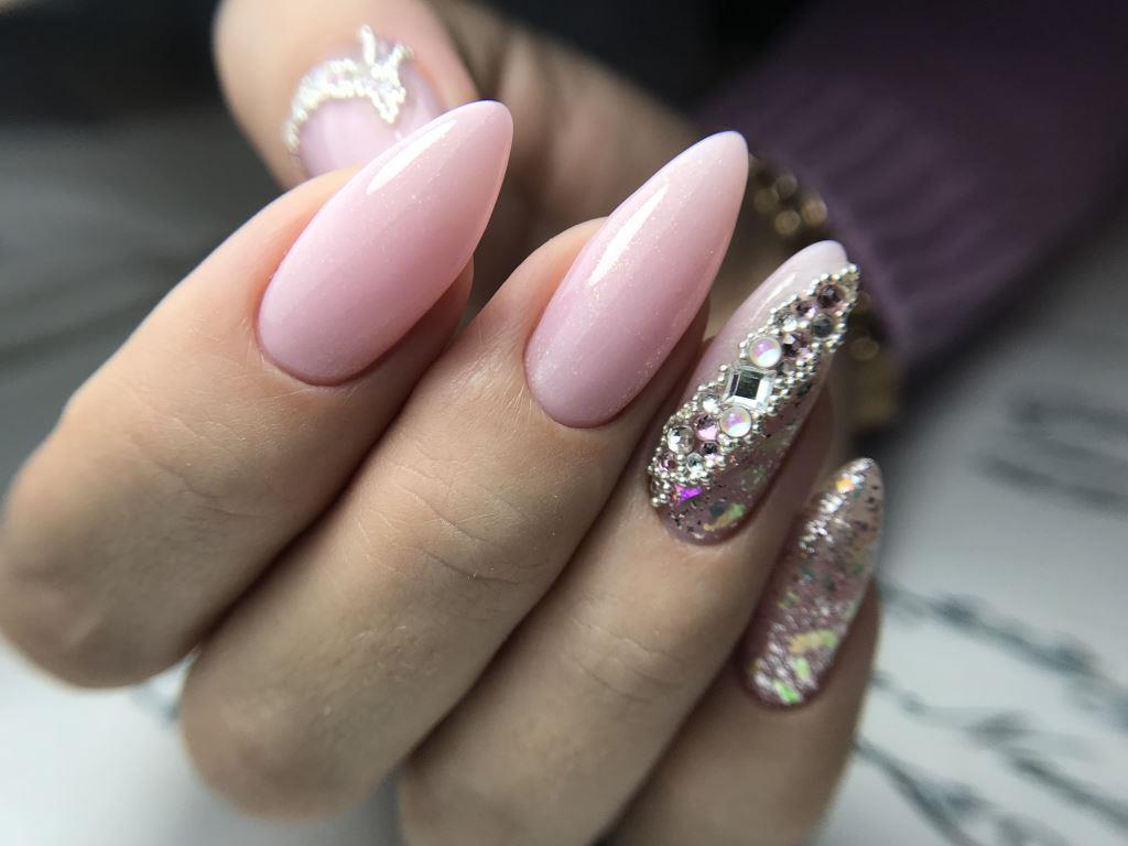 Инкрустация выполняется на 1 акцентном ноготке. Если ногти короткие, то для декора можно выбрать большой палец. На средних и длинных ногтях миндалевидной формы инкрустация выглядит особенно эффектно и привлекательно. Здесь для декора выбирайте безымянный палец, так как он используется реже других, при этом постоянно на виду.