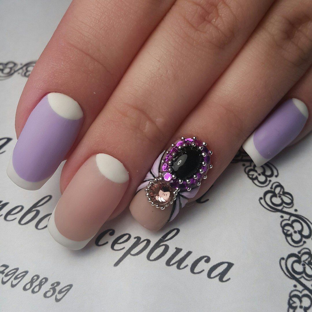 Для молодых, смелых и неотягощённых домашними заботами будет в пору французский маникюр с различными дополнительными элементами, придающими объёмность. Оригинально смотрятся аппликация с использованием для неё бисера. Пикантно выглядит мех и перья на ногтях. Использование любого подобного варианта с эффектом 3D поможет создать удивительное зрелище и выразить своё бунтарское состояние души.
