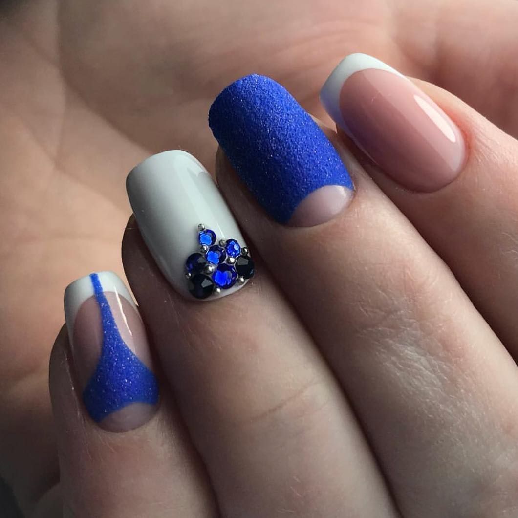 бело-синий френч с декоративной раскраской среднего и безымянного пальца