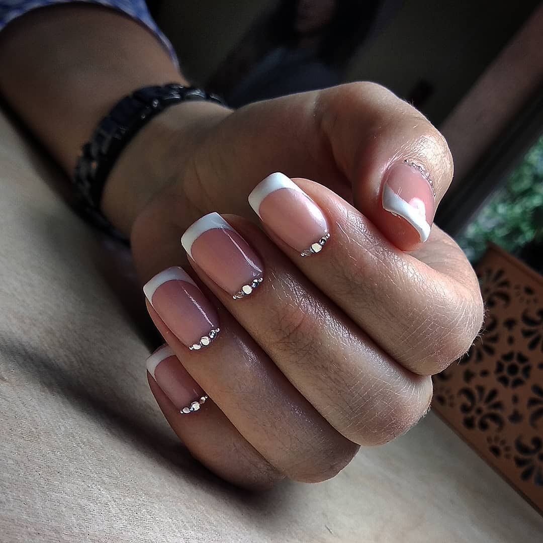 Белый французский маникюр подходит для коротких ногтей любой формы – квадратной, овальной. Самые подходящие варианты дизайна: