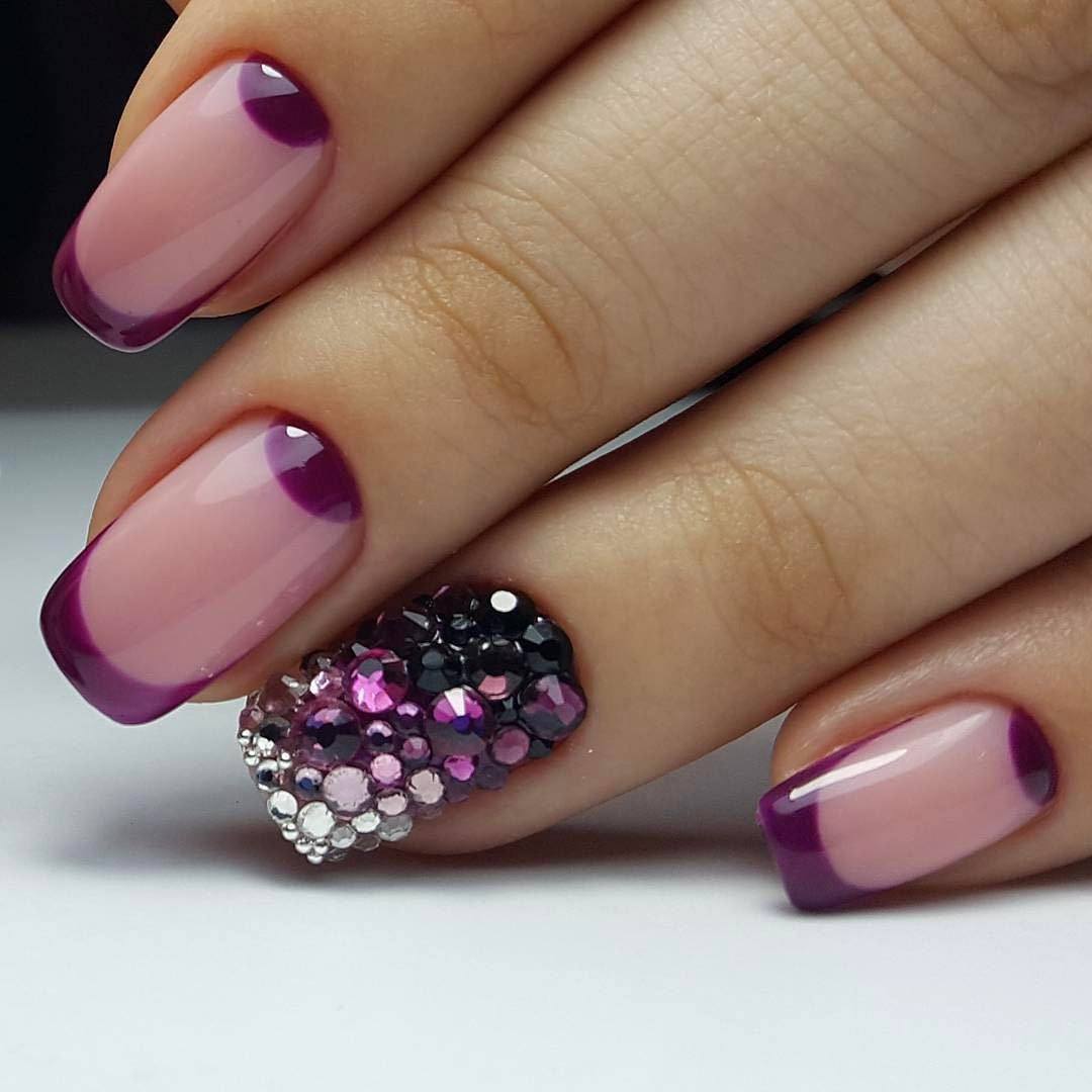Стразы давно стали обыденностью, поэтому часто их не рассматривают как оригинальный и необычный способ украшения ноготков. На их место приходят гель-лаки с эффектом «кошачий» глаз, втирка, объемные металлические фигурки и другой декор. Но даже при таком разнообразии, французский маникюр со стразами остается проверенным и стильным способом украшения ноготков по любому случаю.