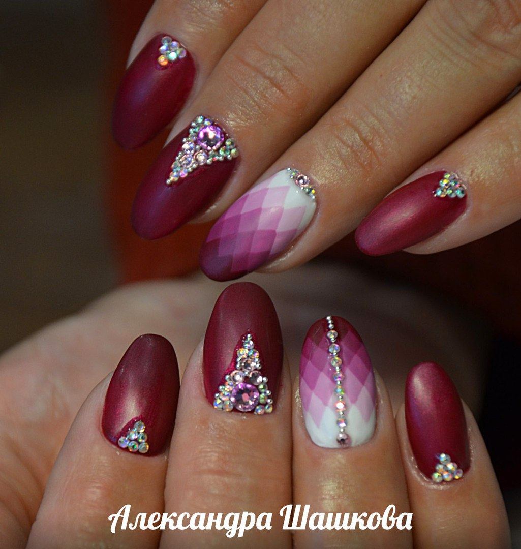 Инкрустация считается сложным дизайном, требующим опыта в выборе оптимального размера камней и их лаконичного размещения на ногтевой пластине. С помощью страз можно создать великолепные узоры и композиции.