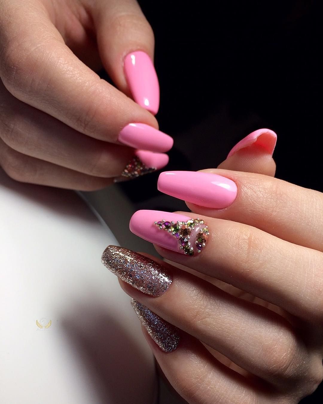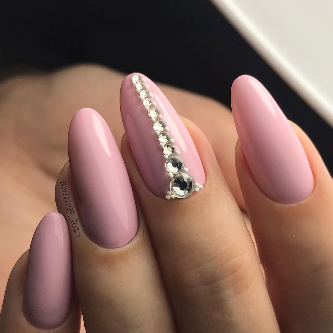 Дизайн ногтей омбре красивый сам по себе, но когда вы добавляете в смесь блеск в виде камушек и страз, он становится еще лучше. На нарощенные ногти не наносите камни на все пальцы, лучше сделать акцент на одном-двух.