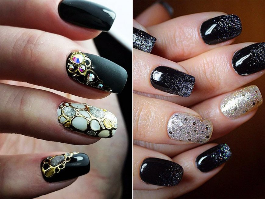 Отличный вариант для праздника. Для основы используется любой тип и цвет лака — от прозрачного до насыщенного матового. Особенность — украшение различными по цвету, форме и размеру камнями и стразами, наклейками.