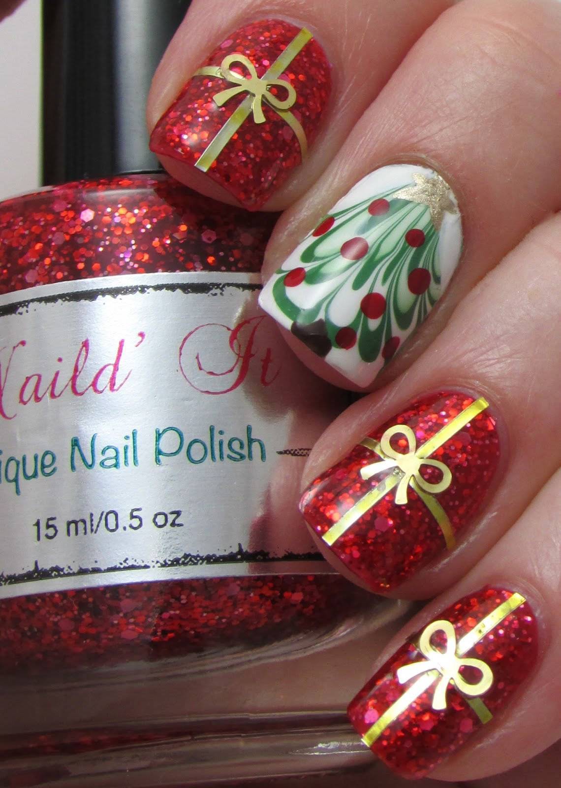 А также можно комбинировать новогодние рисунки с фольгой, блестками и стразами, подбирая нужные цвета.