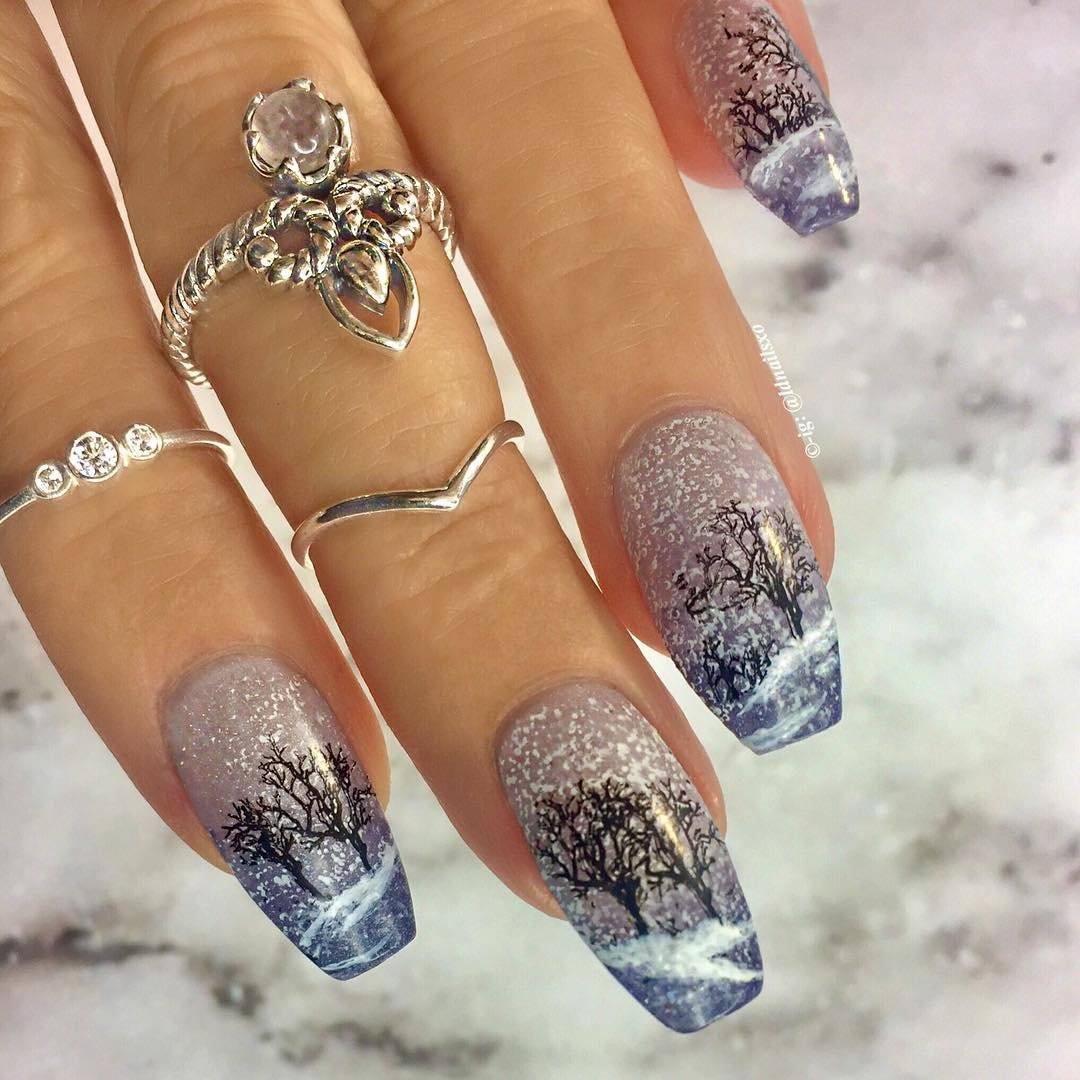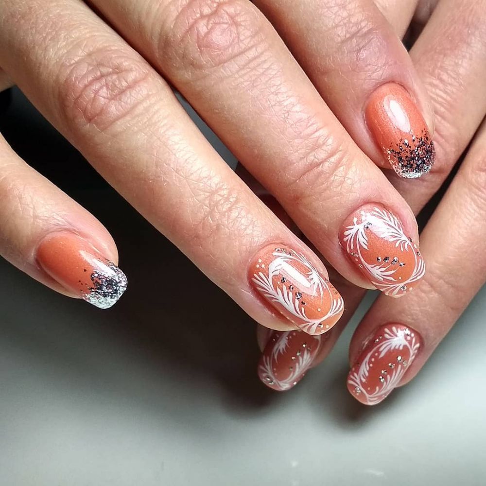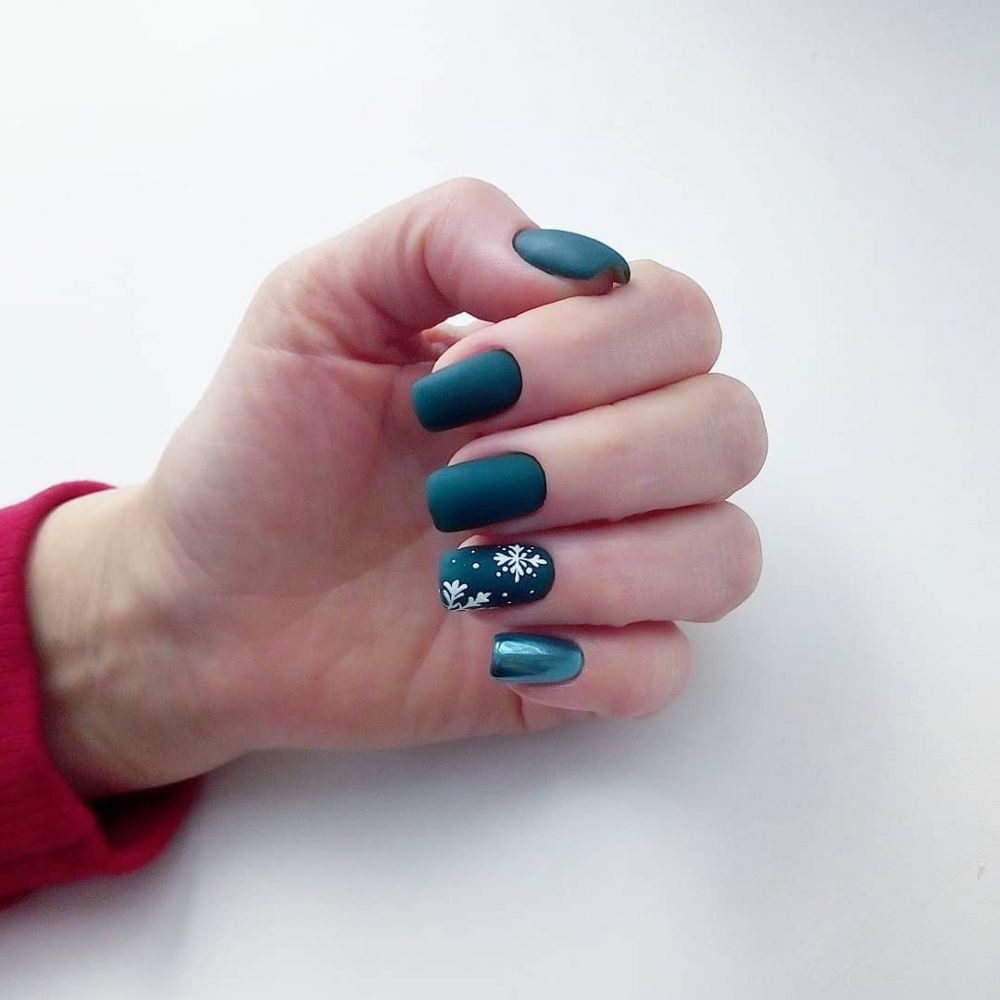 Одной из излюбленных вариаций считаются морозные узоры, покрывающие несколько ногтей притом, что все остальные выполнены в классическом стиле.