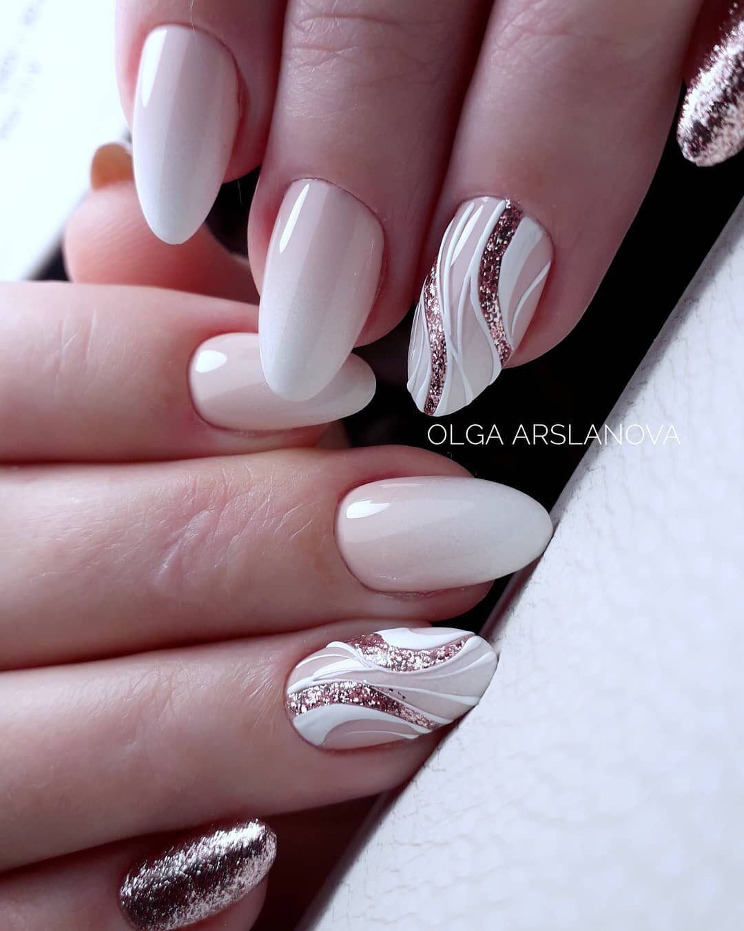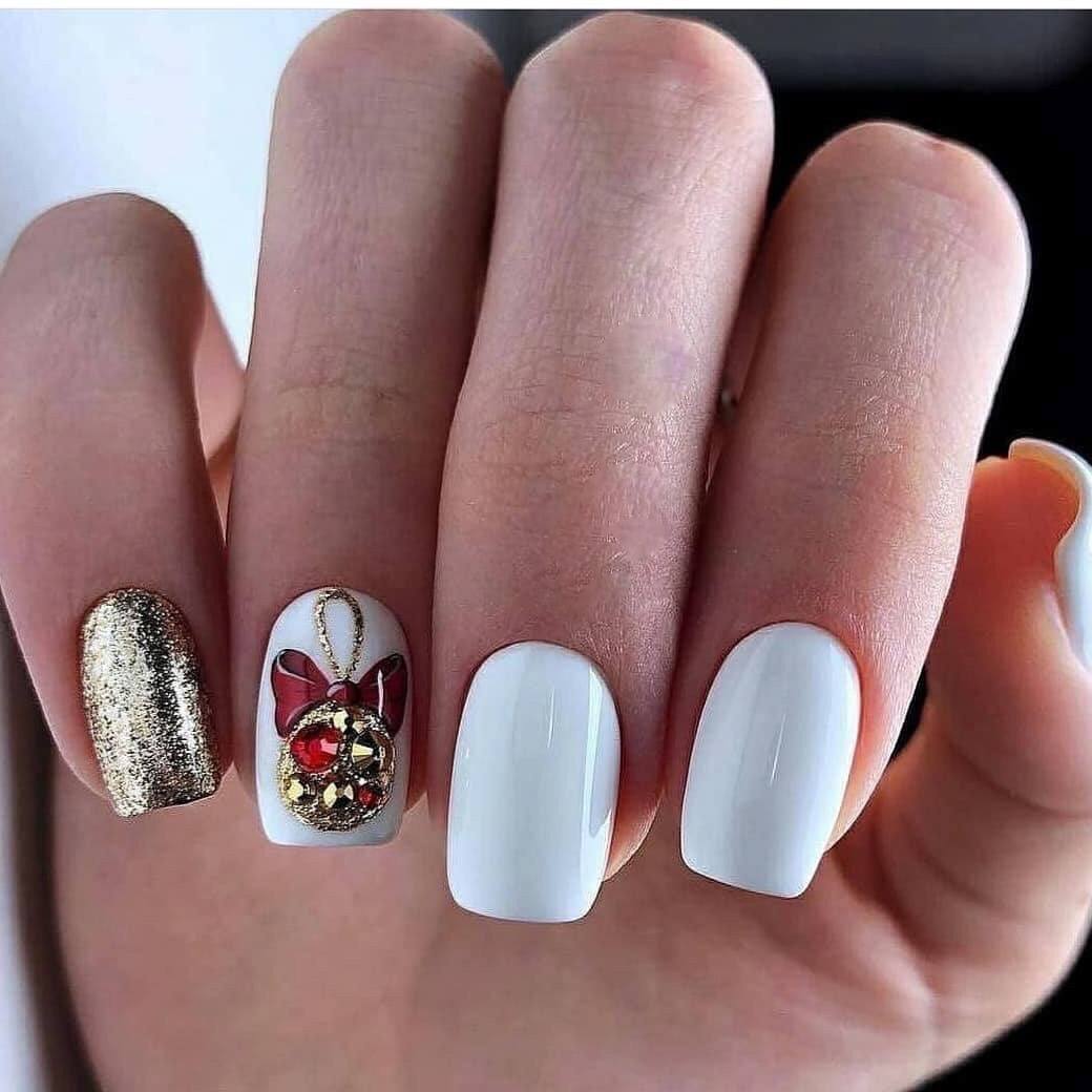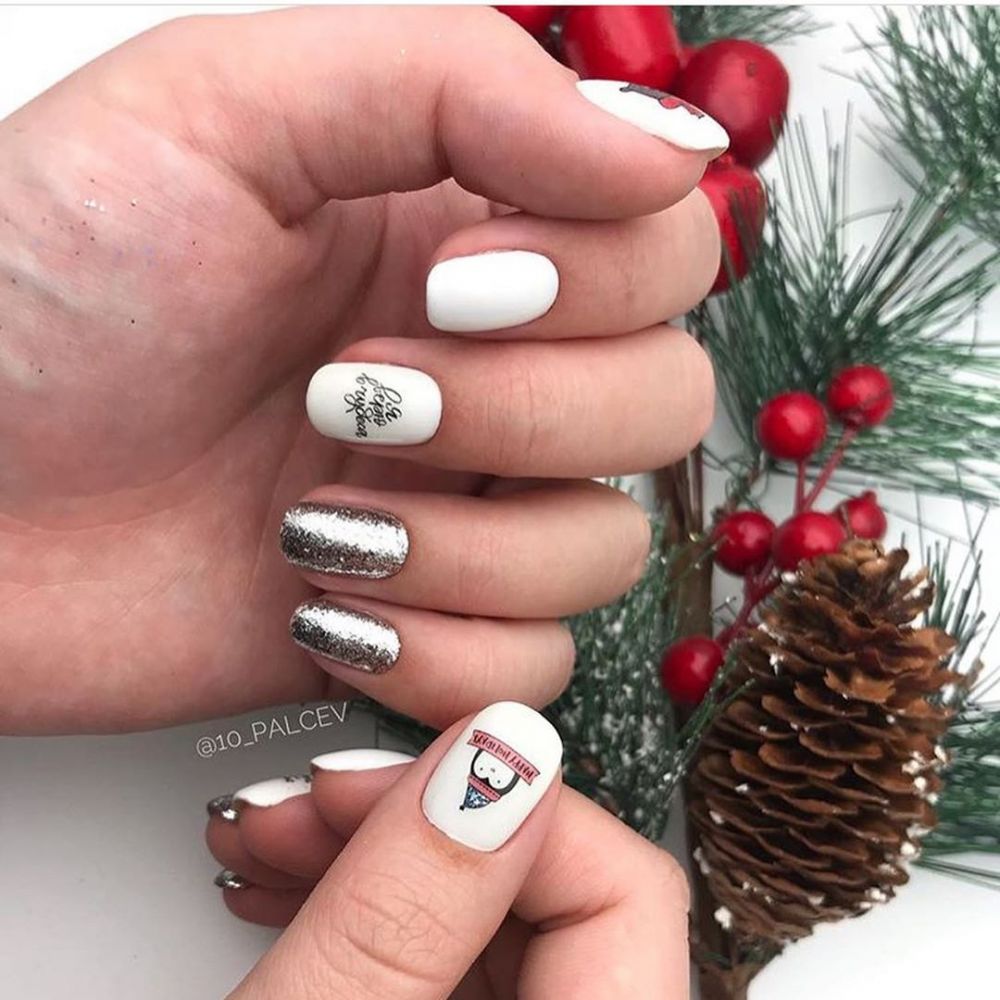Белые и подобные светлые оттенки в новогоднем маникюре