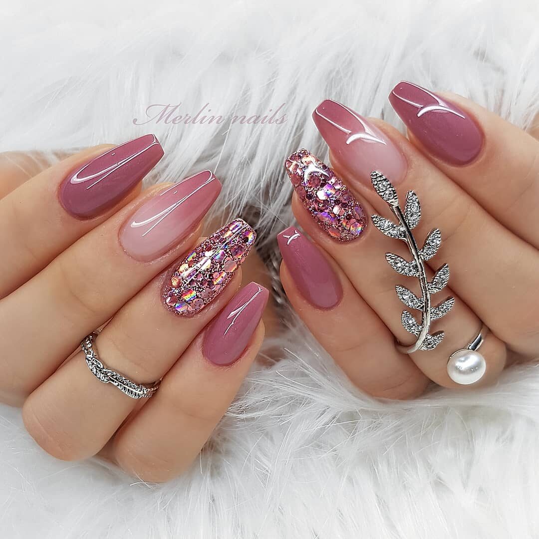 Вы можете выделить один ноготок или сделать неповторимый «блестящий» дизайн.
