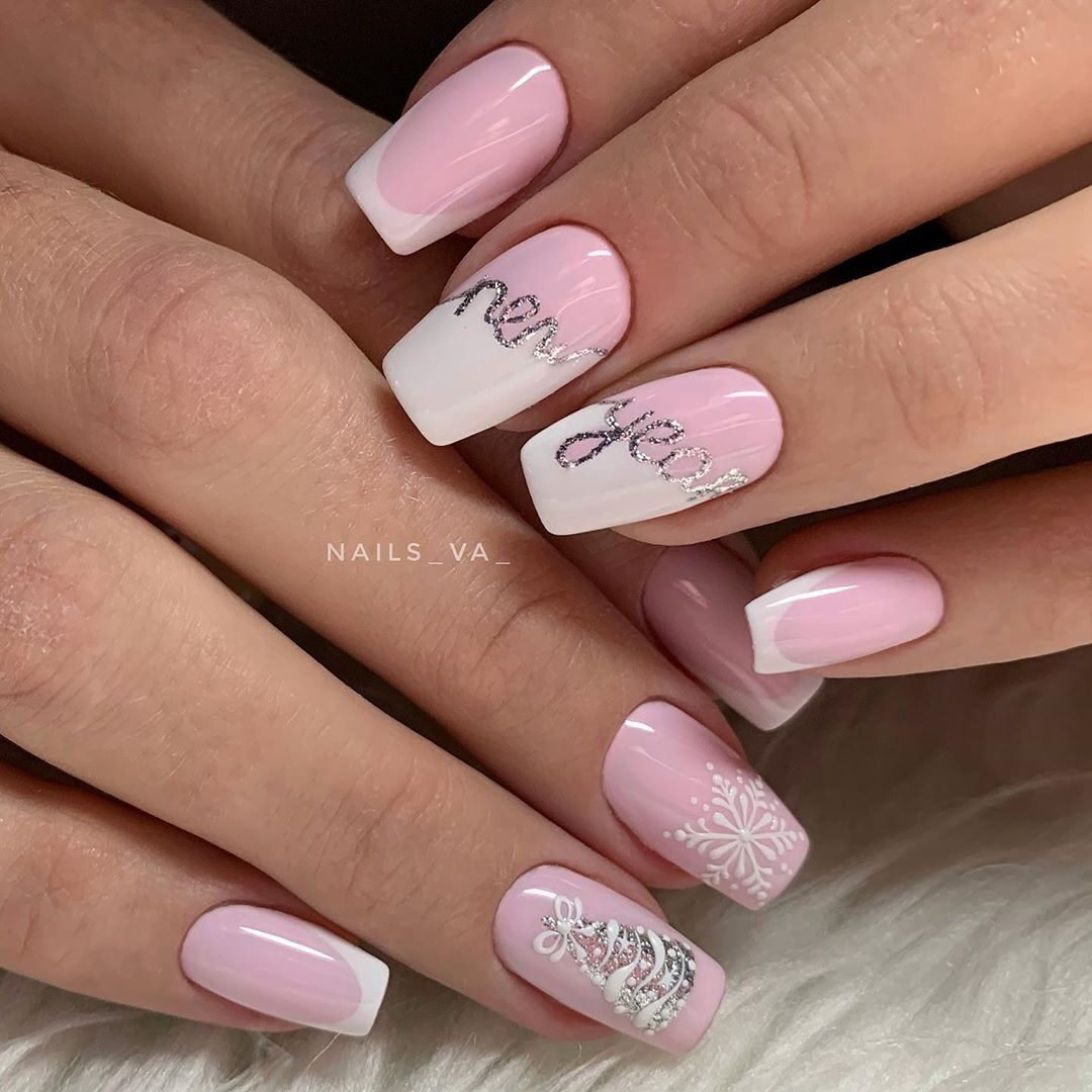Модный новогодний дизайн френч-маникюра-2021: оригинальные рисунки для ногтей (с фото)