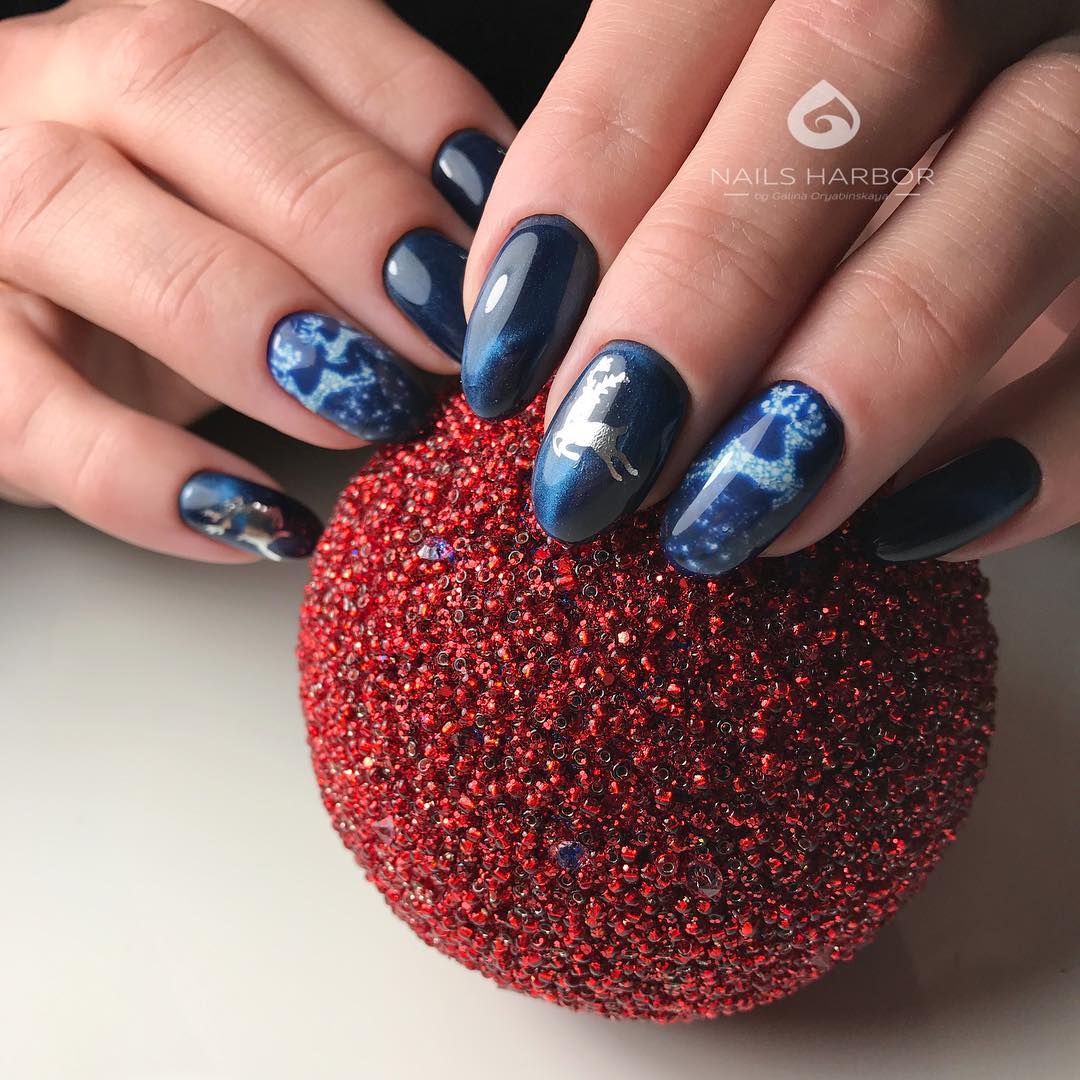 Полоски, снежинки и изображение любой новогодней атрибутики только приветствуются в этом случае. Вы можете оригинально чередовать декор и рисунки с однотонным покрытием, а также совмещать на одной руке одновременно несколько техник. В любом варианте дизайна результат будет сногсшибательным!