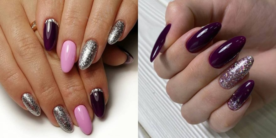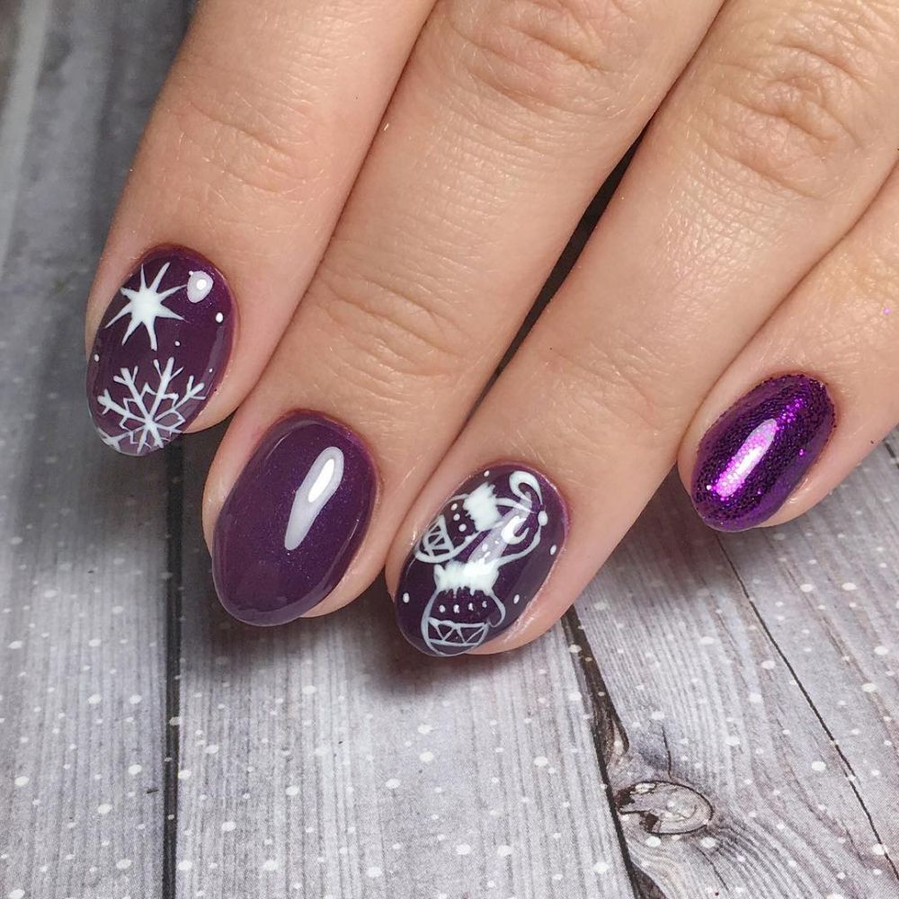 Эти цвета самые новогодние из всех, которые можно представить для маникюра: красный может символизировать цвет шубы Деда Мороза (или Санта Клауса), а фиолетовый – зимнее ночное небо. Но эти цвета одинаково хорошо сочетаются с белым лаком, серебристыми и золотистыми оттенками, красиво смотрятся в матовом выполнении.