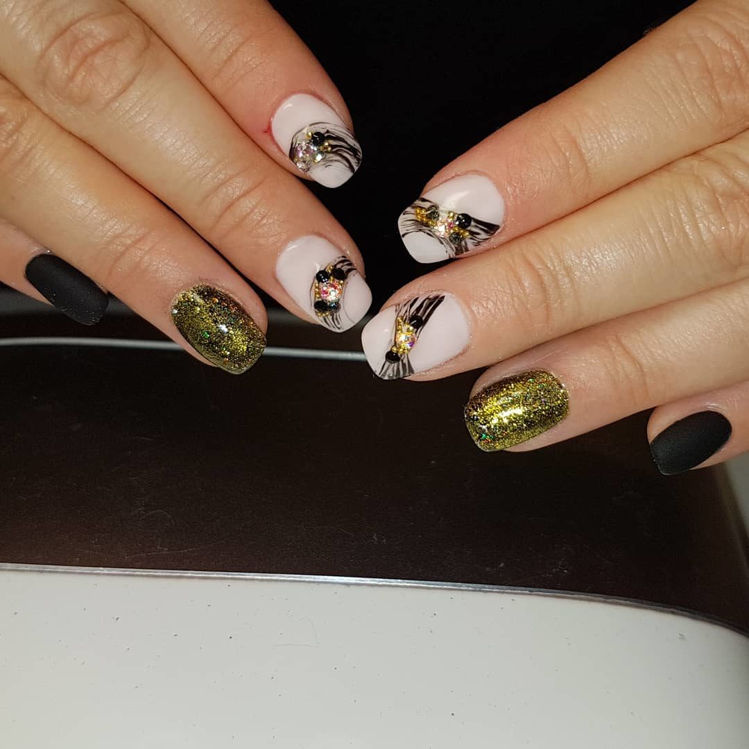 - Кроме петушков делайте другие рисунки. Вместо него сделайте омбре по цвету, как петушиный хвостик. Так же можно на покрытии чёрного цвета сделать зёрнышки золотистого окраса. Также на розовых краешках ногтей можно нарисовать красные гребешки. Это сделать очень легко, и результат будет потрясающим.