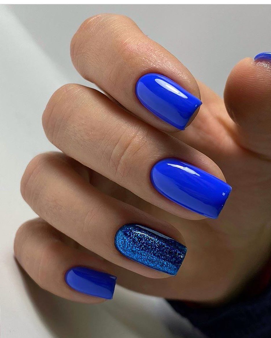 Если вы еще не знаете, в чем встречать 2021 год Быка, то пора поспешить, ведь до Нового года осталось уже совсем немного времени! Учтите, что астрологи и стилисты в один голос рекомендуют выбирать сверкающие наряды, металлический декор, серебро, пайетки и глиттер. Эту же «блестящую тему» смело можно перенести и на новогодний маникюр 2021 года. Блестки сегодня наносят как на короткие, так и на длинные ногти, и в обеих случаях такой дизайн выглядит великолепно!
