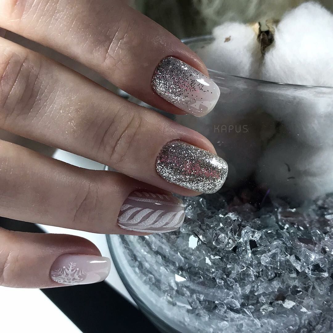 Маникюр в нежных не кричащих оттенках создают как для новогодней ночи, так и дальнейшего ношения после окончания празднеств. Особо неброский маникюр актуален для покрытия гель-лаком, когда дизайн держится на ноготках не один день.