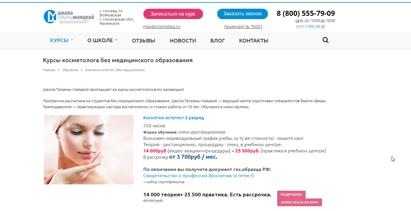 «Курсы косметолога без медицинского образования» — Косметологическая школа Татьяны Маяцкой