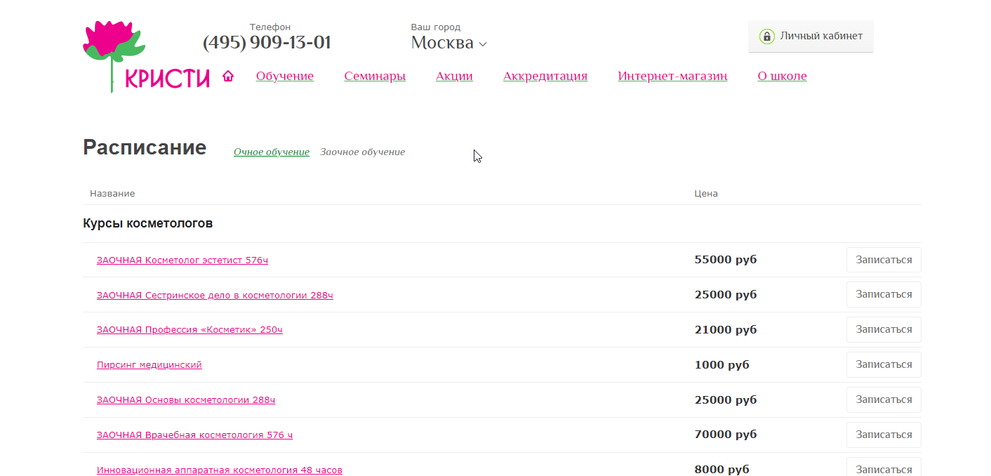 - очные. Проводятся в учебном центре с обязательным присутствием обучаемого;