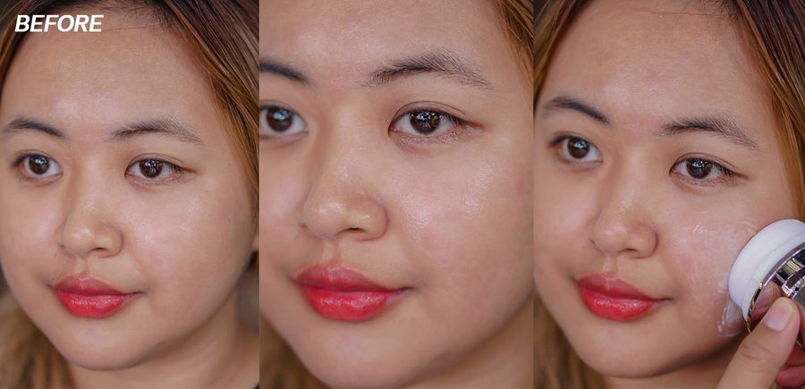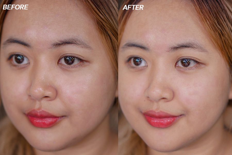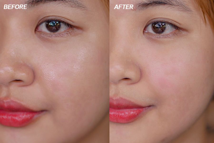เริ่มกันที่การปกปิด คือถ้าดูดีๆ หน้าเนียนมาก ความมันวาวหายเกลี้ยง กลบความมันได้เนียนสนิท แต่เอาจริงๆ ไม่รู้สึกแห้งเลยนะ สบายผิวมาก! แล้วนี่ซูมให้ดูรูขุมขน คือ เบลอรูขุมขนได้ดีมาก ในส่วนของการปกปิด ก็แป้งฝุ่นอะ จะคาดหวังให้ปกปิดระดับ HD ก็ไม่ได้ป้ะ ถ้าต้องการหน้าเนียน ปกปิดเริ่ด แนะนำให้ลงหลังลงรองพื้น รับรองว่า ปัง!