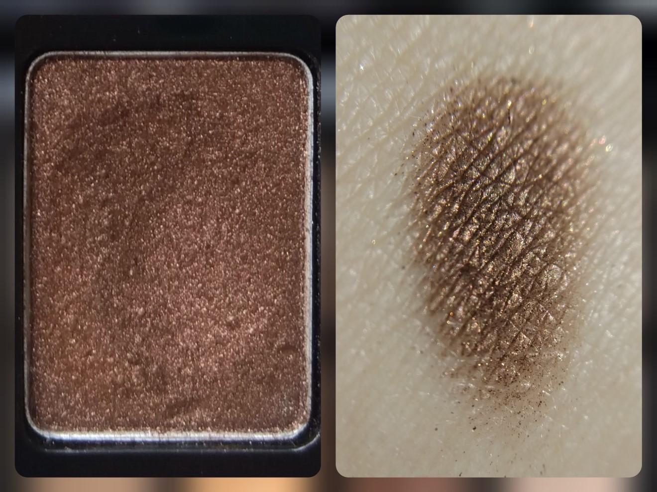 Оттенок #11 – землисто-коричневый, которым очень удобно прокрашивать складку подвижного века. Высокая пигментация. Матовый оттенок, очень рассыпчатый и рыхлый, с излишком набирается на аппликатор, с которого сыплется в процессе макияжа. При неправильном нанесении может создавать грязь на веке.