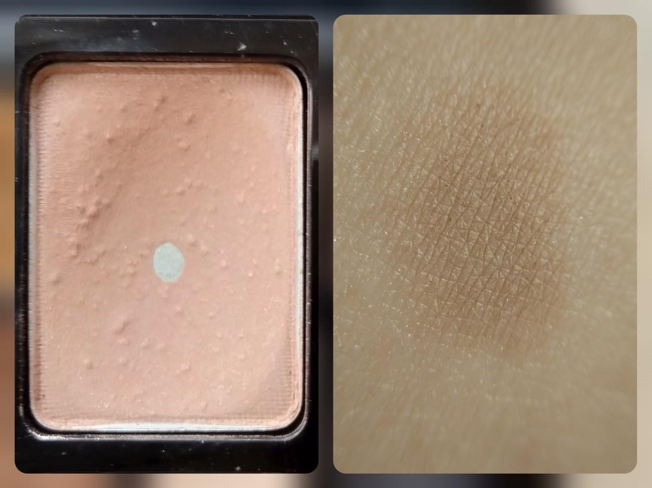 Оттенок #2 с полуматовым сатиновым эффектом даёт неяркое покрытие цвета кофе с молоком, который почти совпадает с оттенком кожи, хорошо растушевывается с другими тенями из своей гаммы. Текстура очень бархатистая.