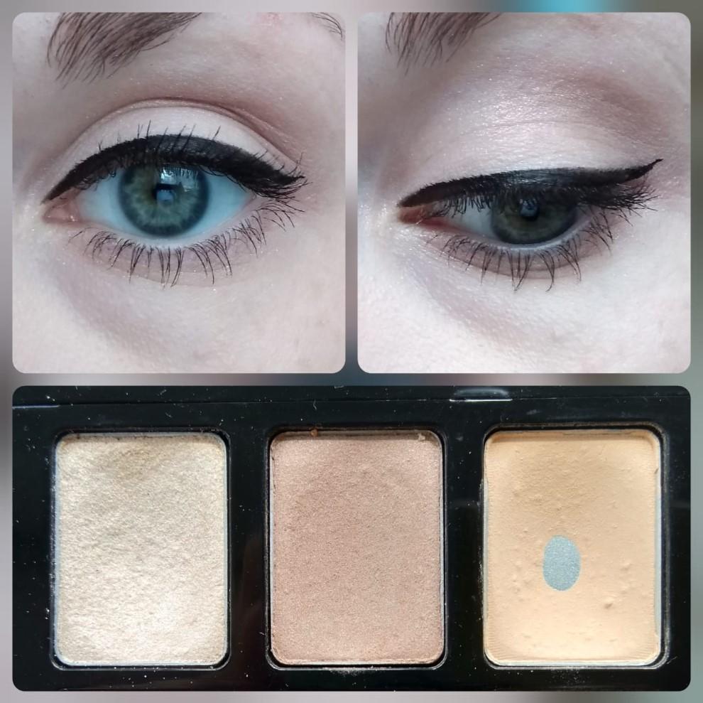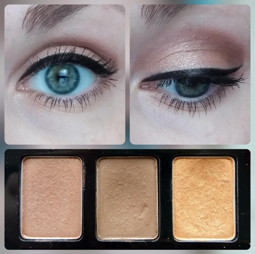 Первое трио дало очень нежный, спокойный макияж из трёх разных типов теней.