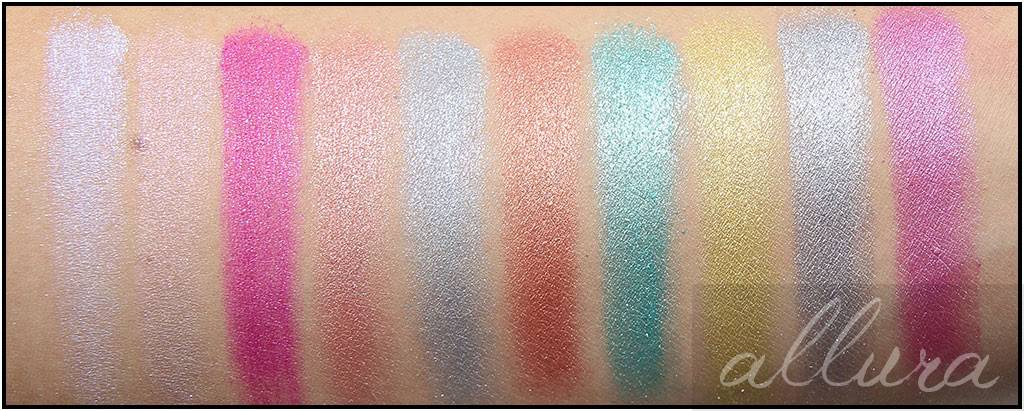 Based on swatches alone, I’m already head over heels for these colours. Though I’m especially loving shades 3, 6, & 9. I know they’ll play nicely with my existing palettes; shade #6 with the Urban Decay Naked Heat palette? Hell. Yes. Some of these shadows could even double as highlighters (particularly shades 1 & 2 for those with fair complexions). I’m so excited to incorporate more fun & vibrant shades into my eye looks!