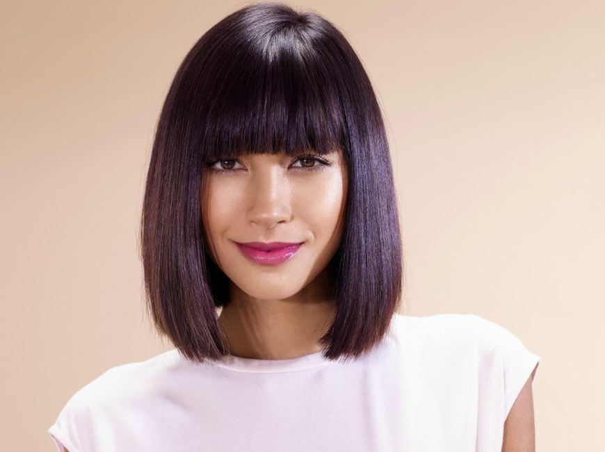 Если вы хотите добавить в образ нотку кокетства, тогда вам нужно рассмотреть вариант стрижки “прямое каре” с челкой. Главная его особенность – ровная форма прически и кокетливая челка. Изящное “каре” подарит молодой или зрелой даме роскошный внешний вид и поможет вернуть уверенность в своей привлекательности.