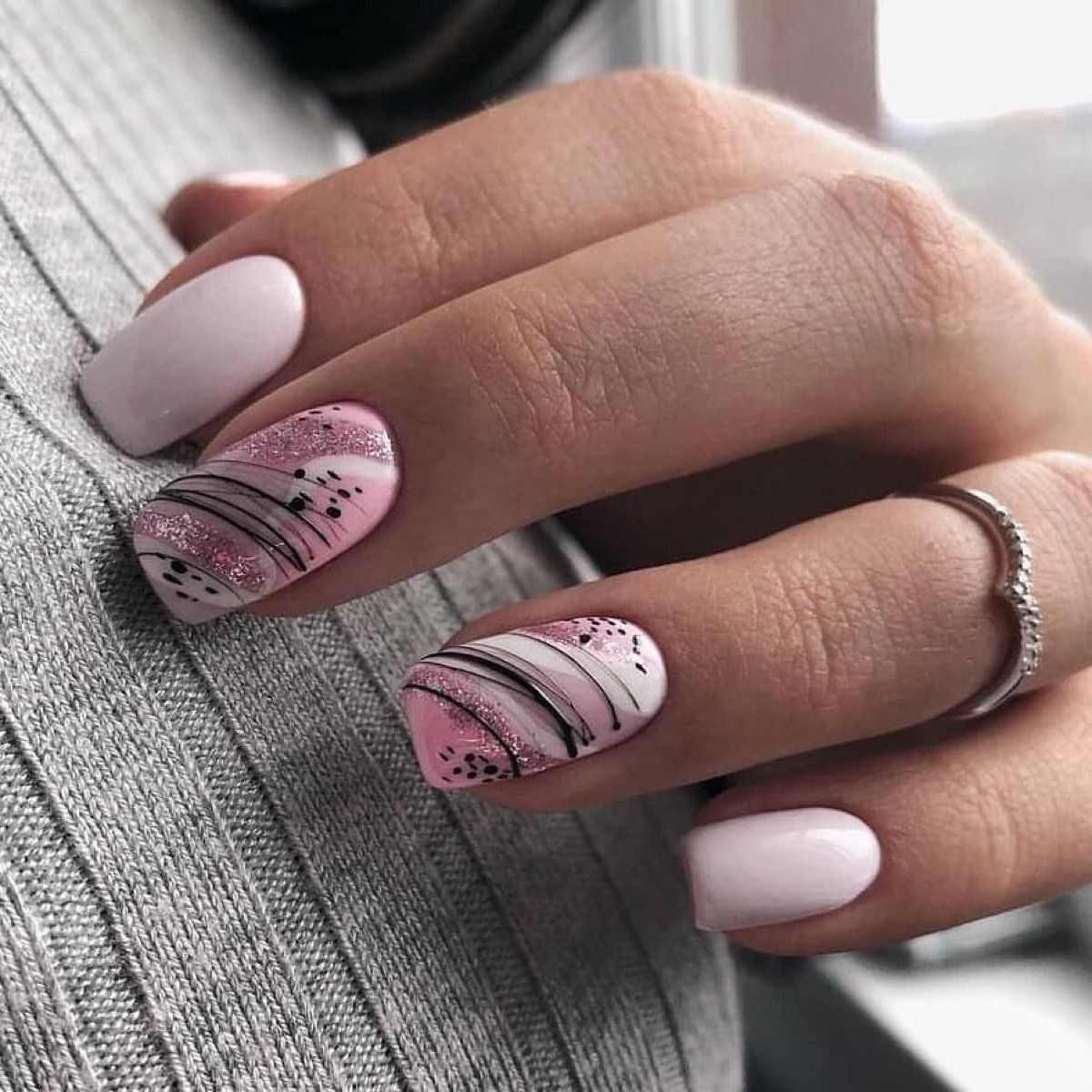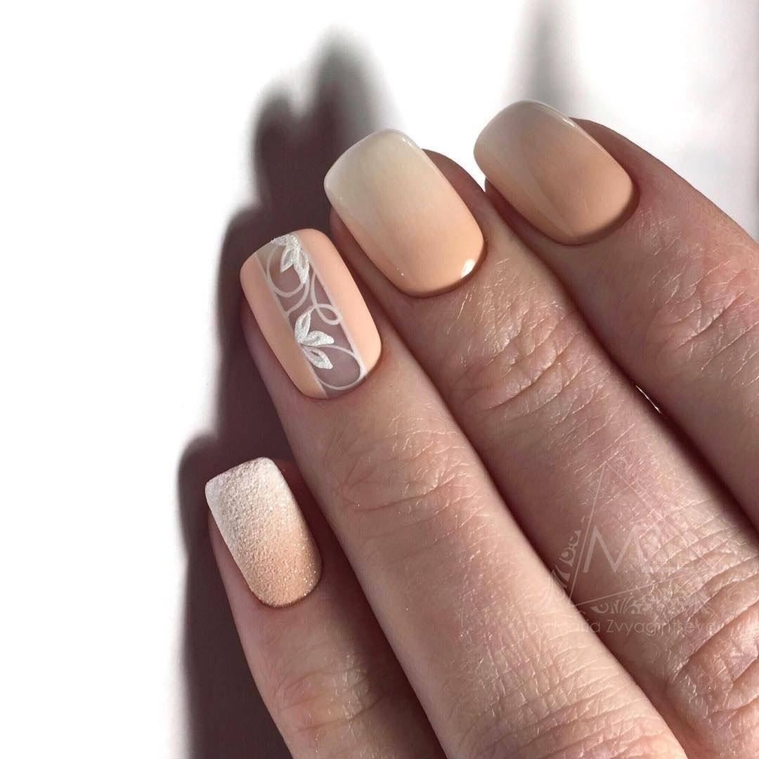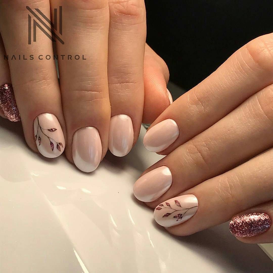 Еле заметные штрихи, точки или изображения узоров из растений на нейтральных оттенках лака ногтей создадут эффект элегантности в любом стиле женщины.
