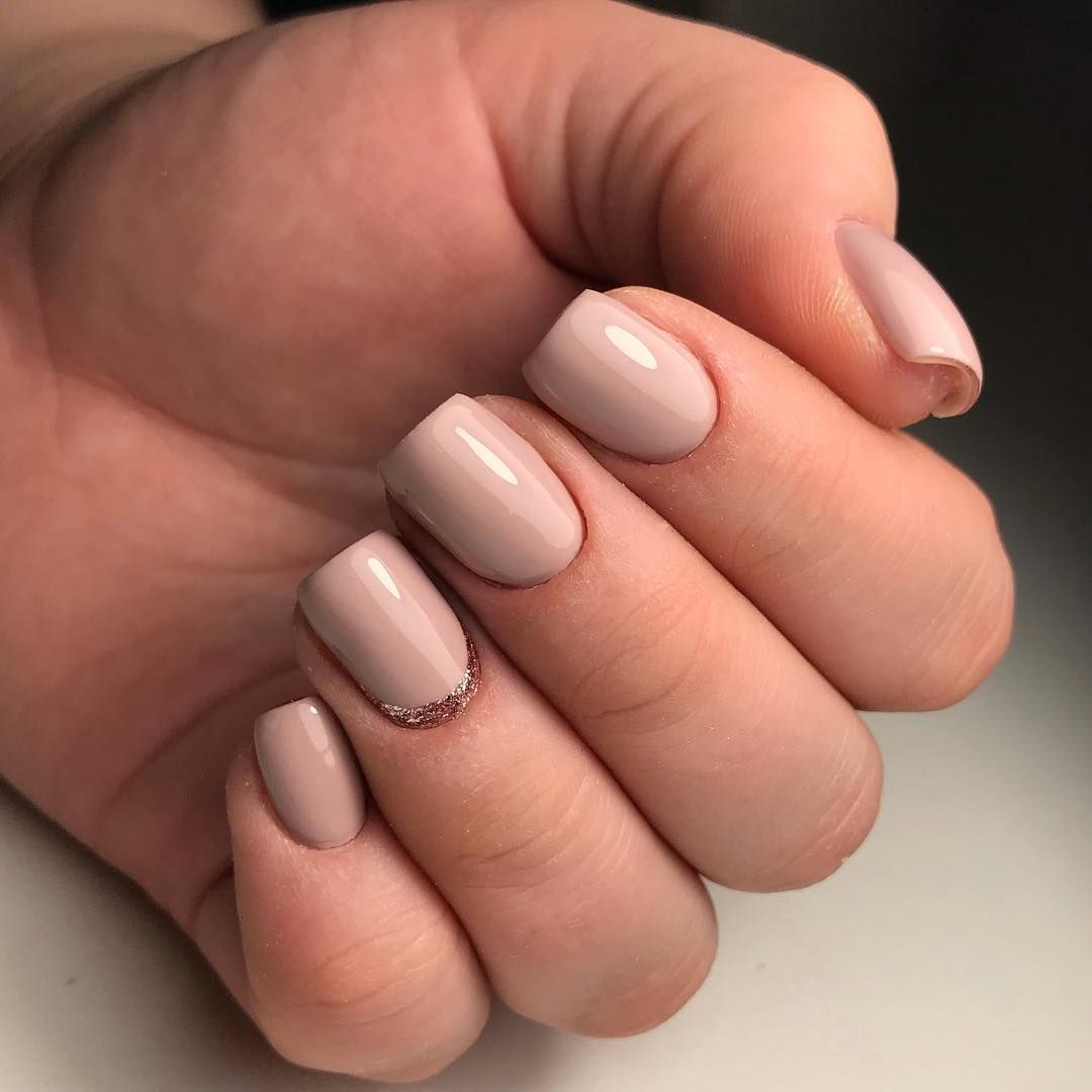 - Для начала нанесите основу натурального цвета. Это может быть нежно-розовый, бежевый и другой оттенок, максимально приближенный к естественному цвету вашей ногтевой пластины.