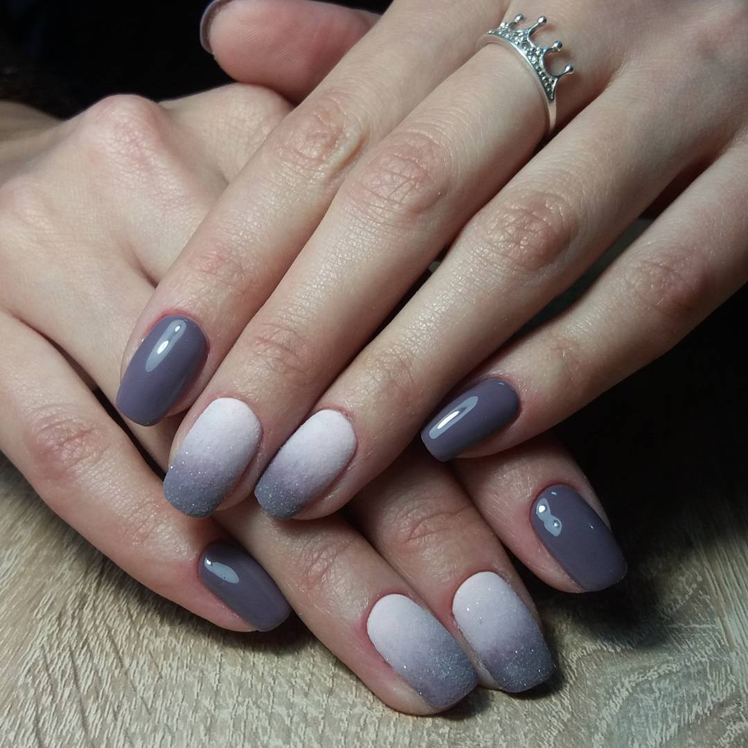 Отличным решением для современного делового стиля станет дизайн омбре с плавным и таким нежным переходом от одного оттенка гель-лака к другому.