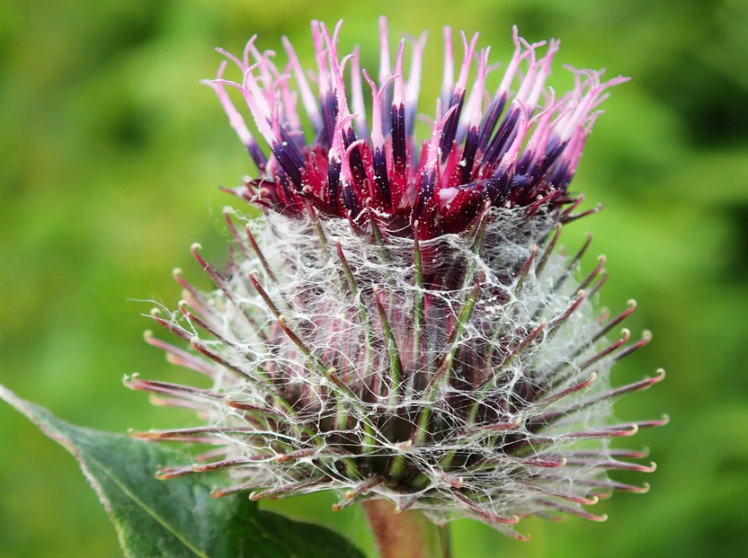 Корень лопуха содержит полисахарид инулин со свойствами кондиционера. После применения растения, волосы не пушатся, легко расчёсываются, блестят.