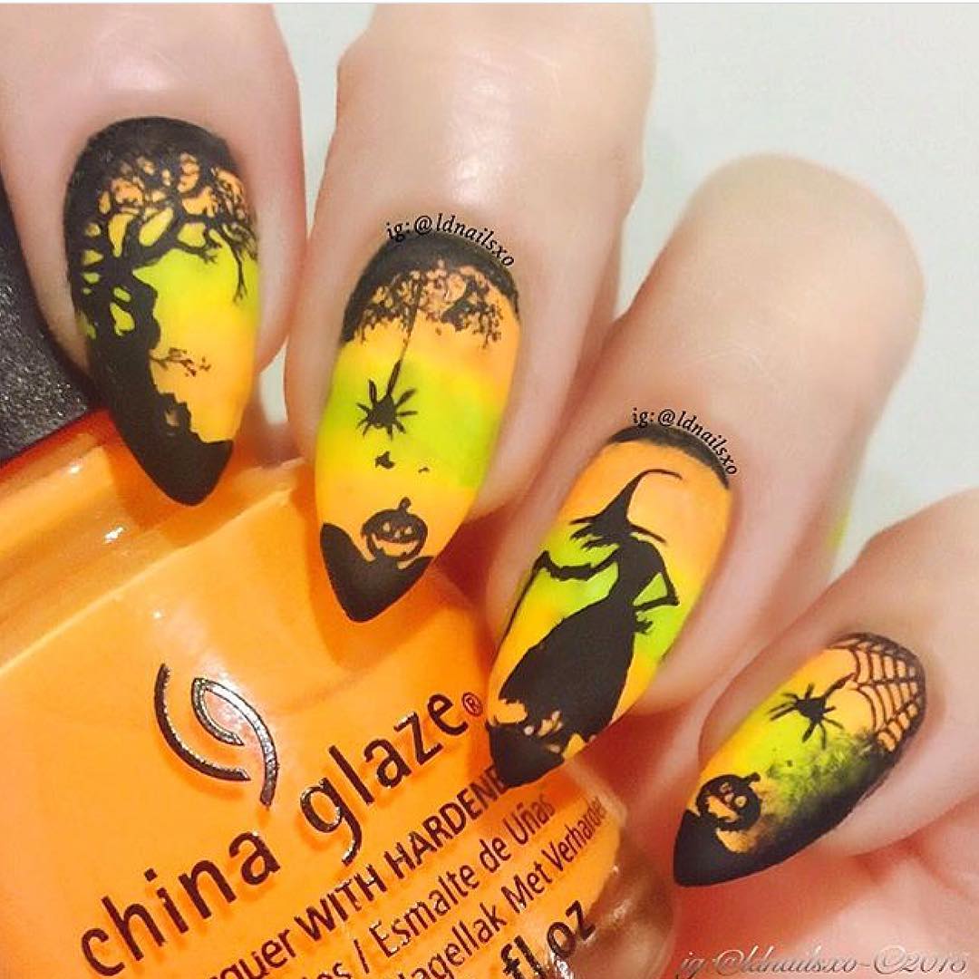 Говоря о черно-оранжевом маникюре, нельзя не упомянуть о дизайне на Хэллоуин. Это наиболее актуальная комбинация цветов для этого «устрашающего» праздника. Причем доминировать в этой парочке будет именно оранжевый, который разбавит слишком мрачные черные нейл-арты. Что рисовать на ноготках на Хэллоуин, зависит только от вашей фантазии. С нашем стороны мы можем подкинуть вам десяток новых оригинальных фото-идей.