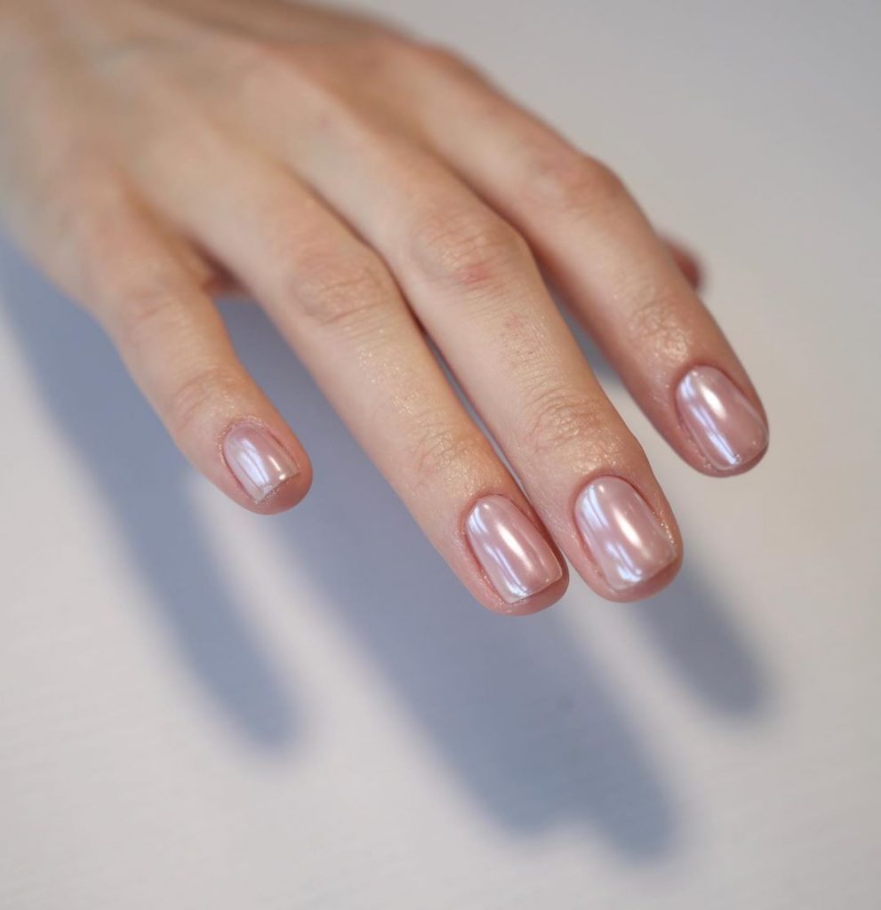 Несмотря на огромную популярность блестящих акцентов, лаконичный маникюр в стиле минимализм сейчас также в почете у модниц. В его основе обычно лежит классическая нюдовая палитра. Можно также сделать ставку на прозрачный фон – такой дизайн не видно, когда отрастает.