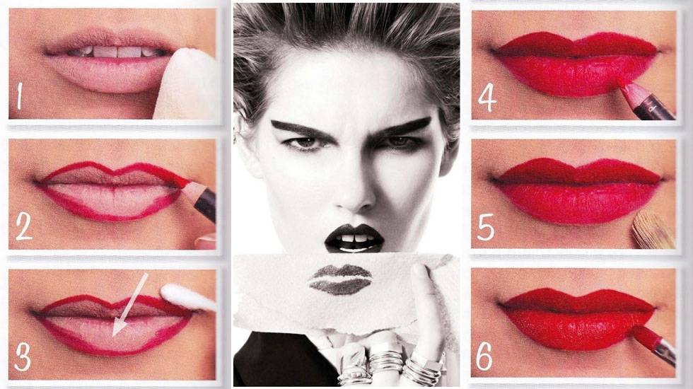 Переходя к макияжу губ, обратите внимание, что ее техника весьма проста. Если вы не хотите, чтобы естественный пигмент ваших губ хоть как-то искажал цвет помады, который вы видите в стике, то предварительно нанесите на губы немного тональной основы