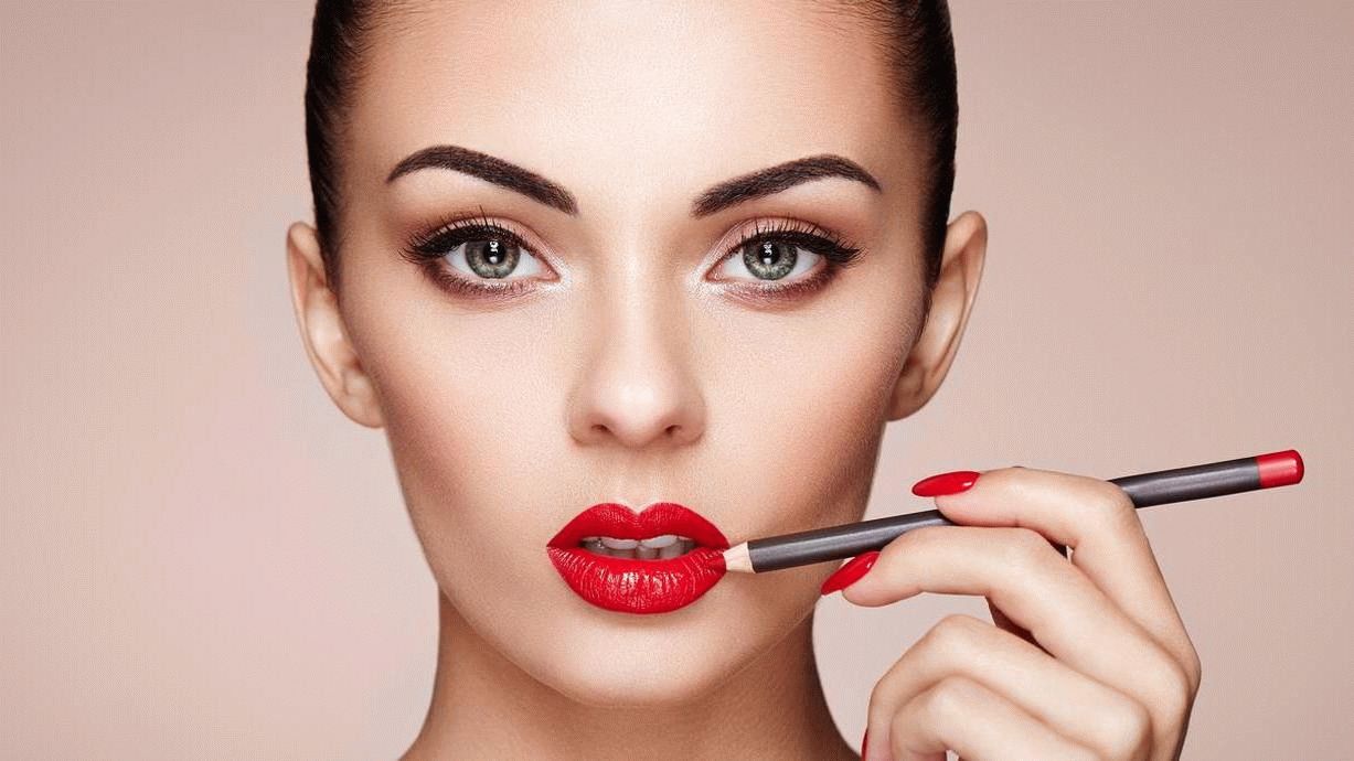 Подкорректировать форму губ можно с помощью контурного карандаша, его оттенок должен быть близок к оттенку помады. Чтобы провести ровный контур, можно прибегнуть к небольшой хитрости: поставить несколько точек карандашом, а затем аккуратно растушевать их.