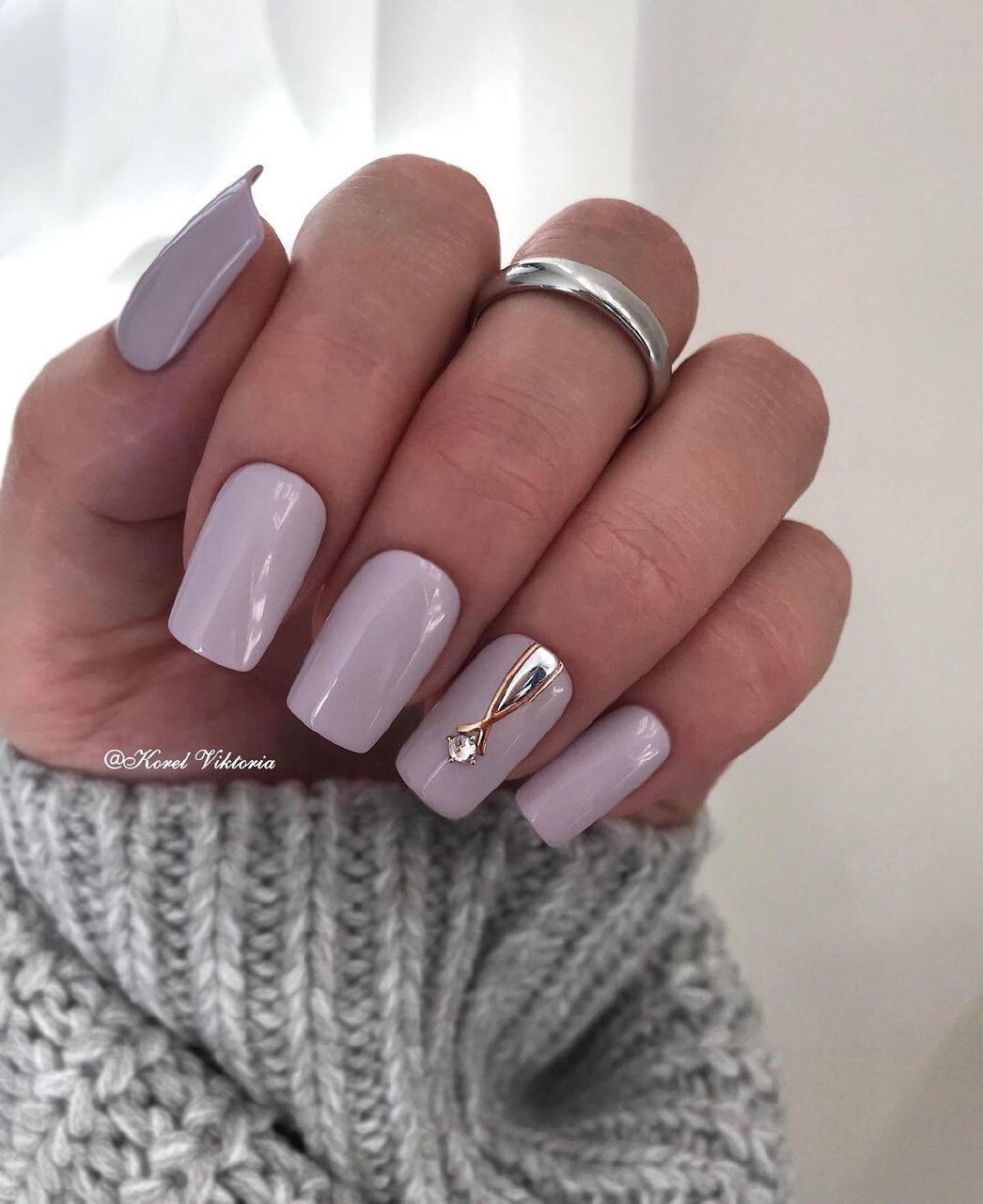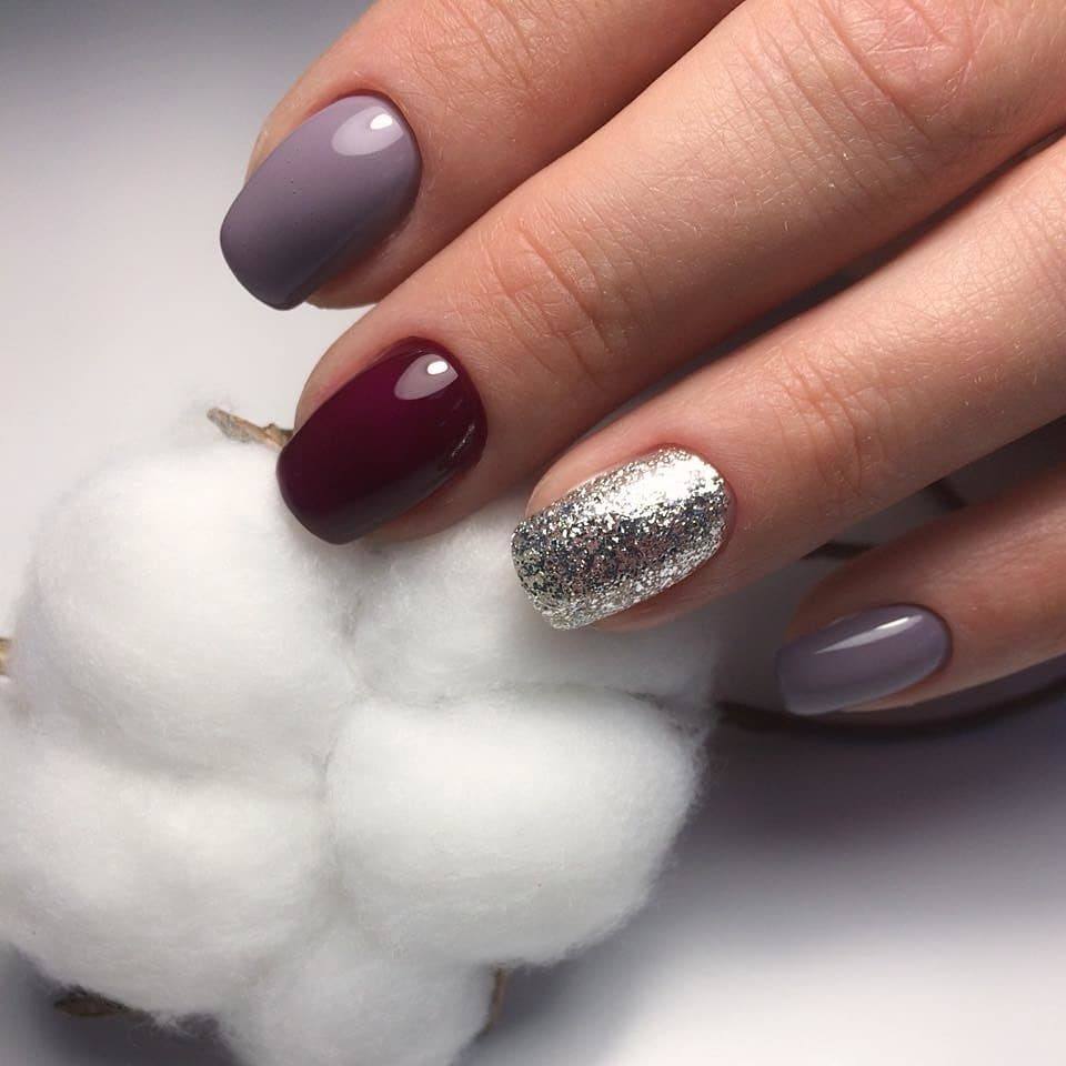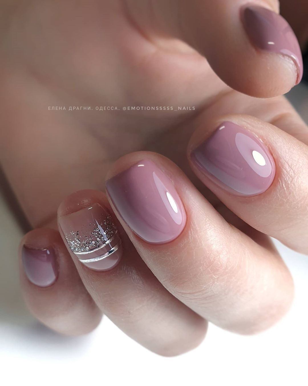 Спокойный серый цвет в сочетании с серебряными блестками — и вы получаете «рецепт» идеального маникюра.