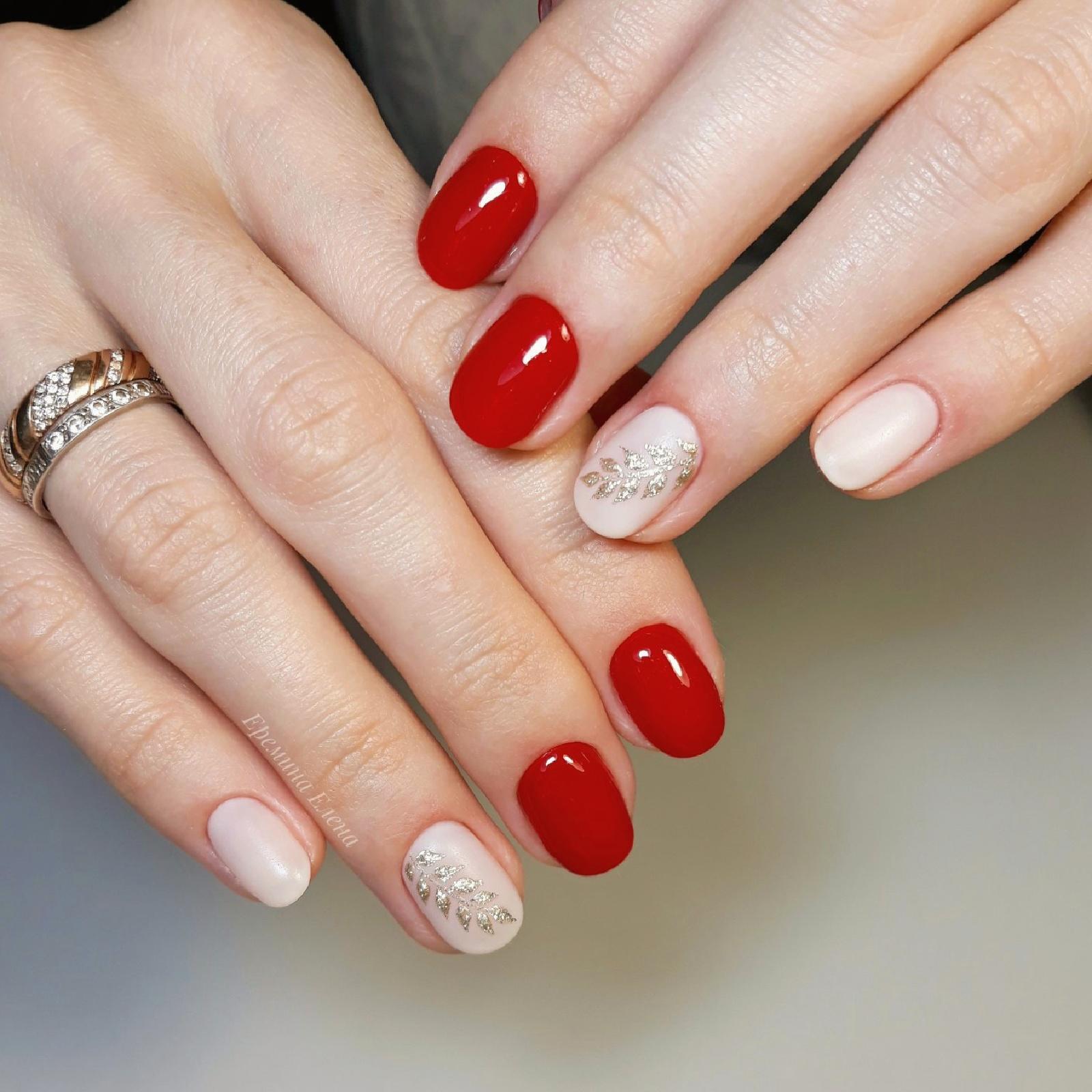 Шикарный классический красный лак можно разбавить серебристыми блестками и получить уже совсем другой маникюр. Красный маникюр идеально смотрится как раз на коротких ногтях.
