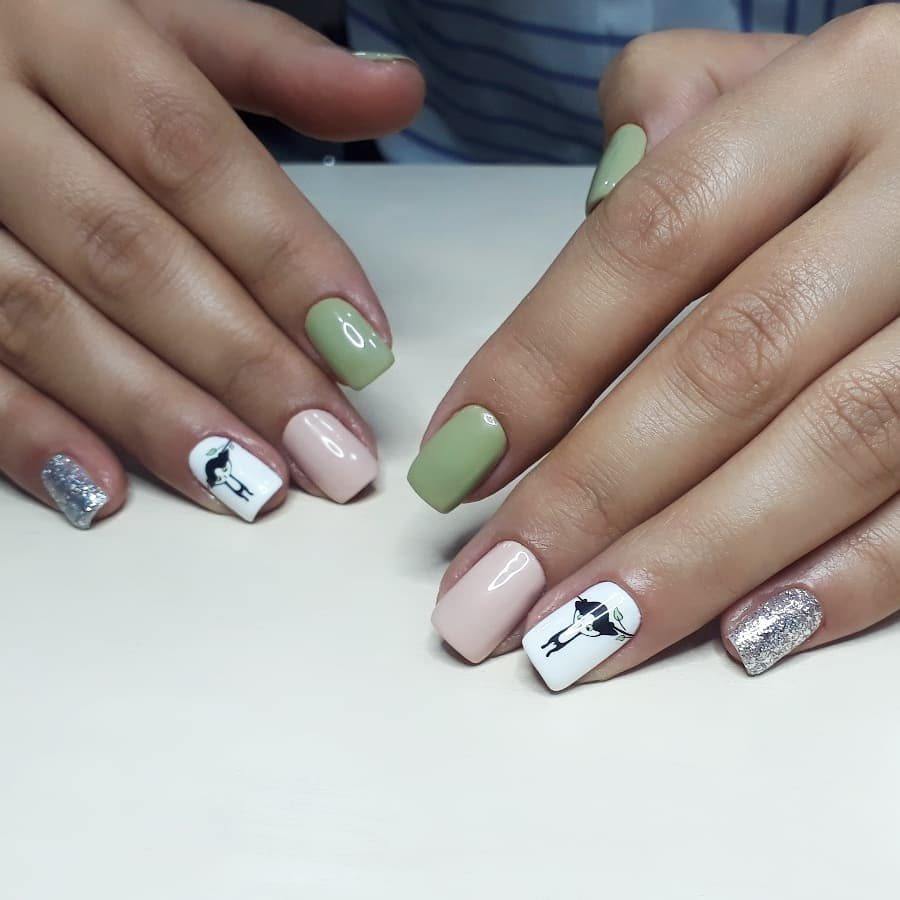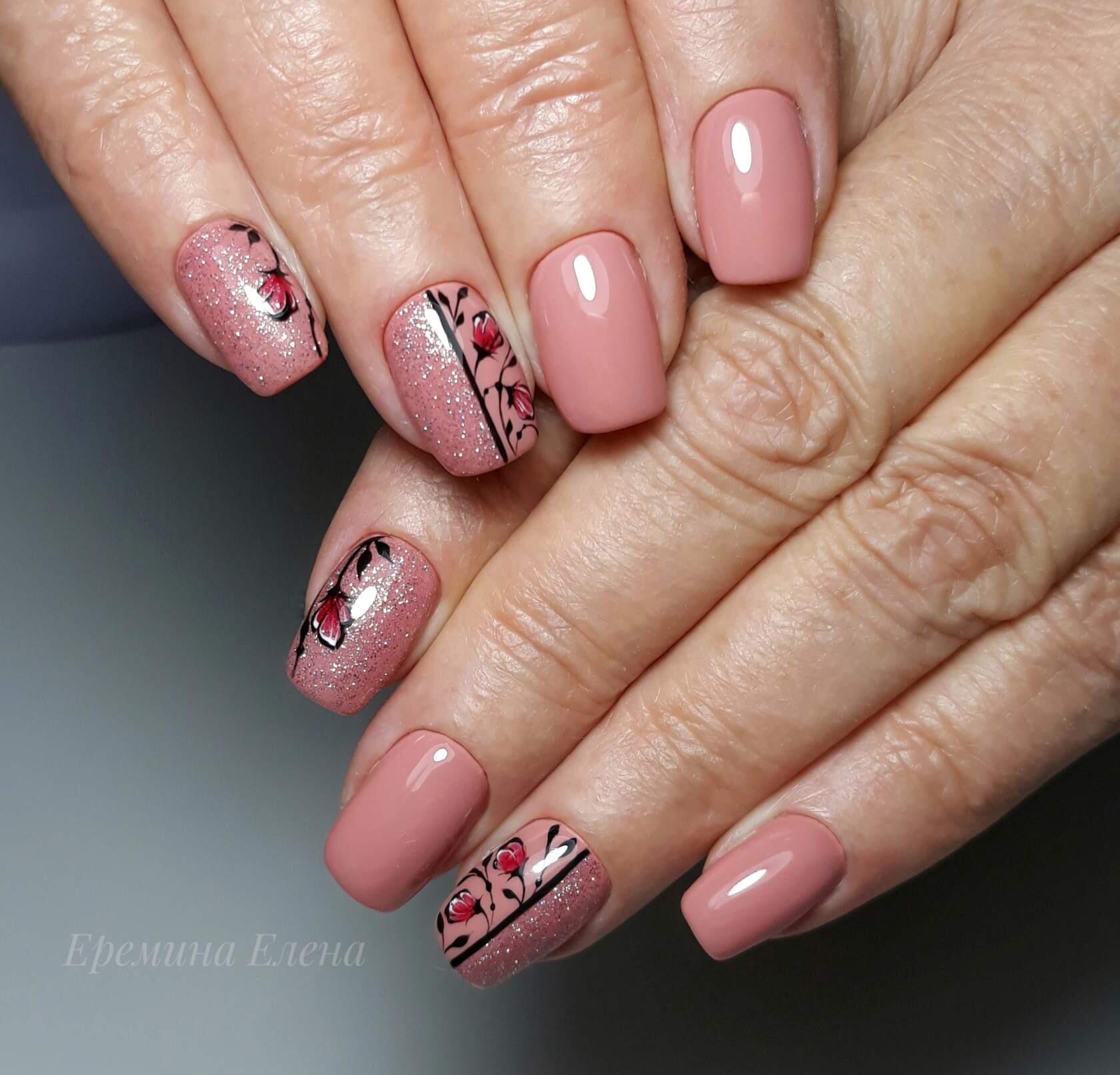 Варианты дизайна маникюра с блестками и рисунком 2020