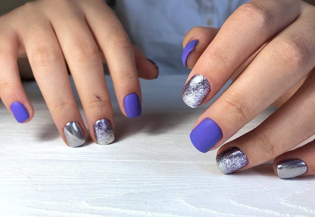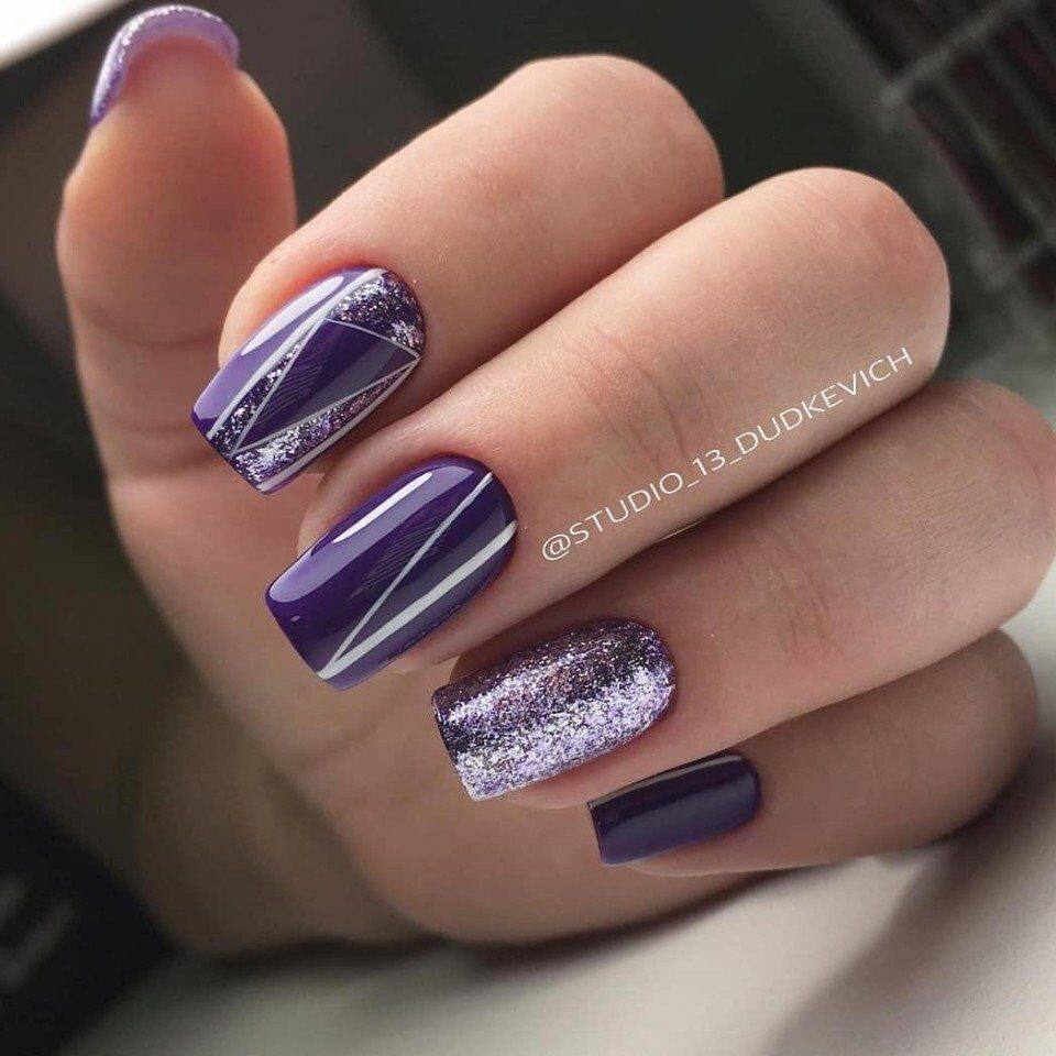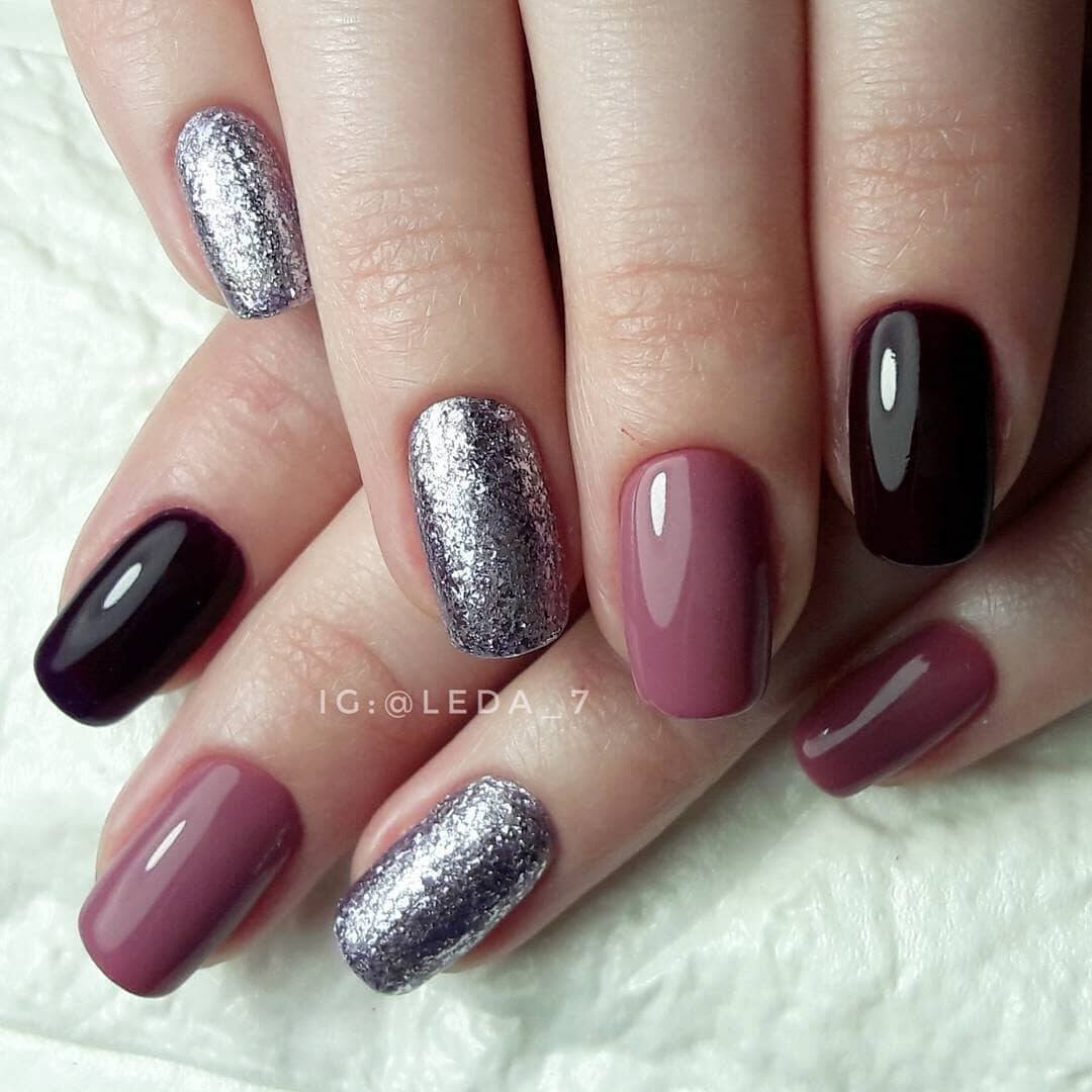 Если вы любите сверкать, то вам не обойтись без лака с блестками, в этом сезоне обратите внимание на темные цвета, особенно привлекательно выглядят такие фиолетовые ноготки