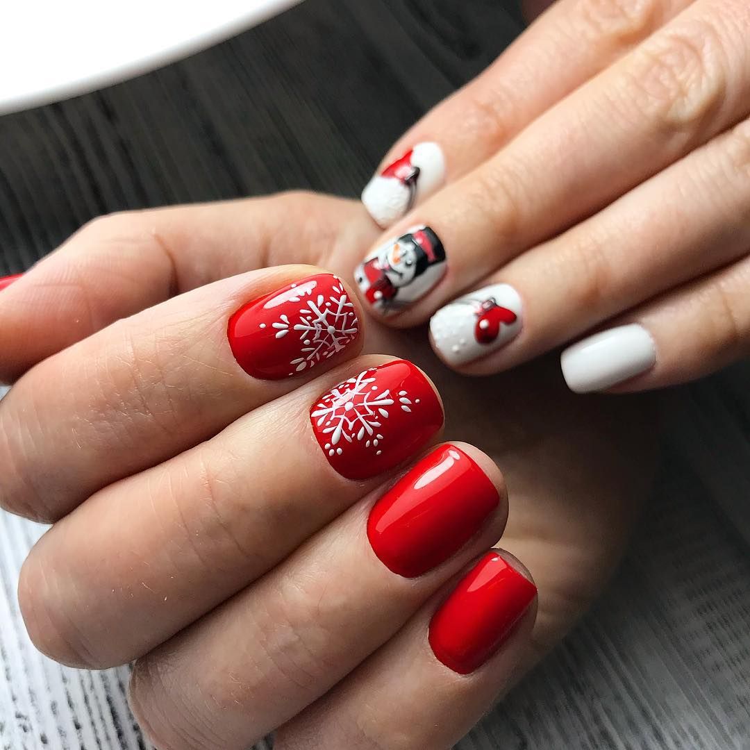 Ну и конечно же, тематический новогодний дизайн практически всегда делают с рисунком и яркими блестками. Только представьте насколько красиво смотрятся снежинки, елочки и подарки на ноготках с таким декором.