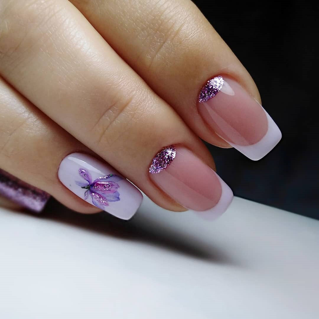 Красивые дизайны маникюра с блестками помогут разнообразить даже самый, казалось бы, скучный образ. Яркие цвета, переливы, а также отблески придадут дополнительный антураж внешнему виду.