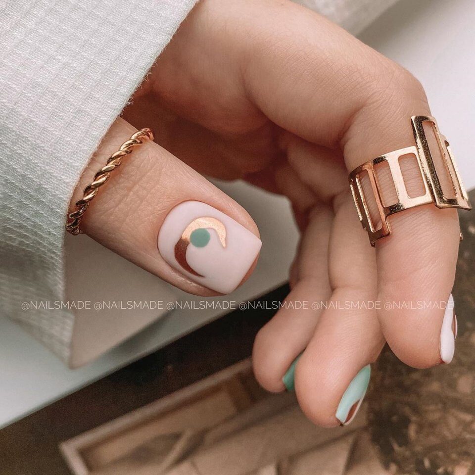 - Самые популярные варианты этой техники — сочетание геометрии и градиентного перехода.