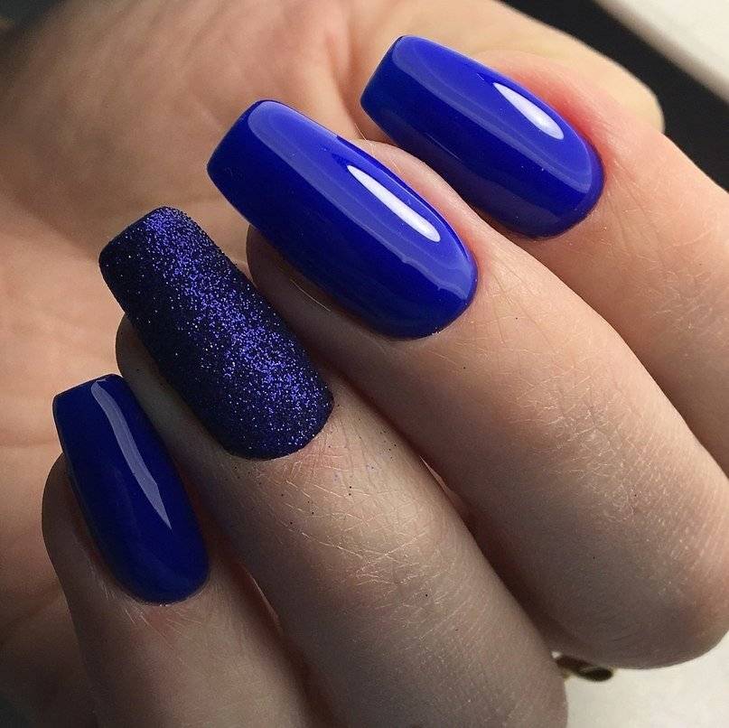 Для него подходят такие цвета как чёрный синий серый белый. В синим нейл-арте применяются блёстки различного цвета и размера. Блёстки сочетают друг с другом.