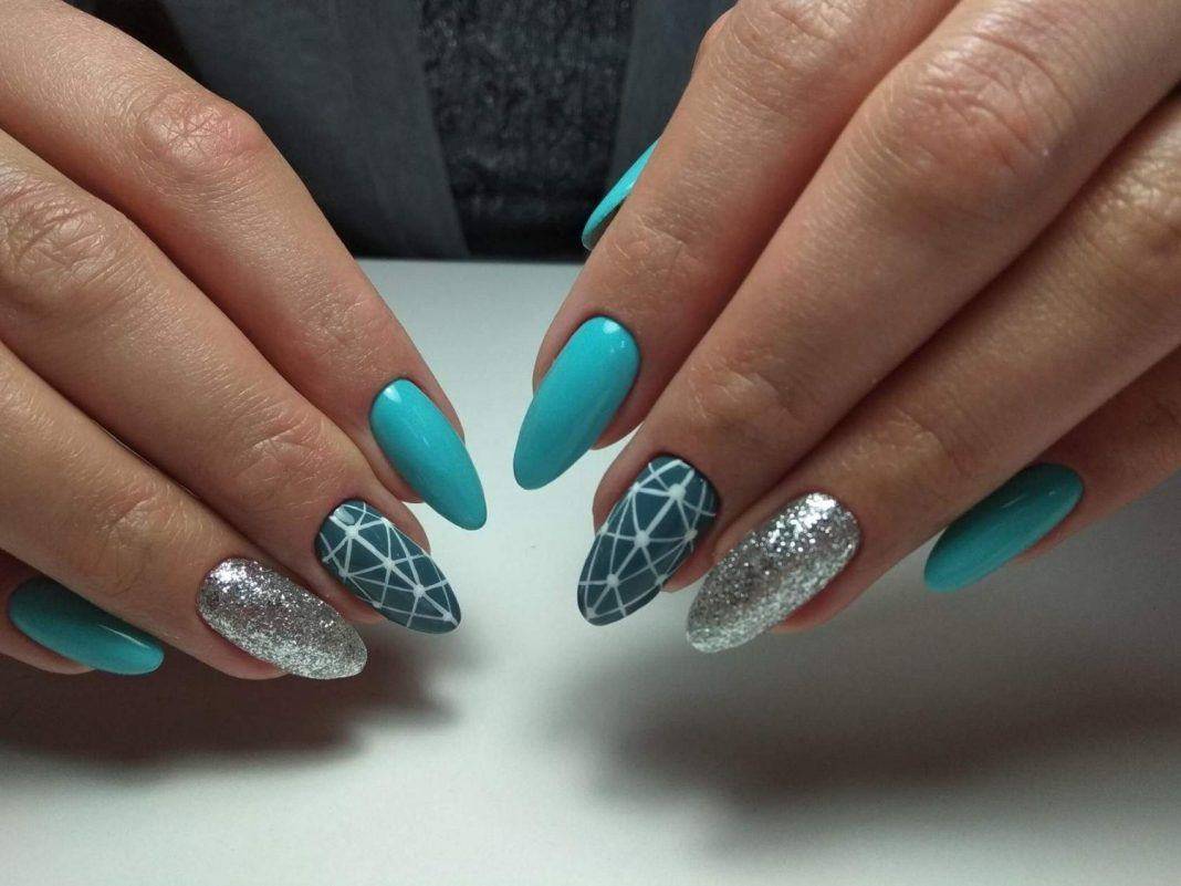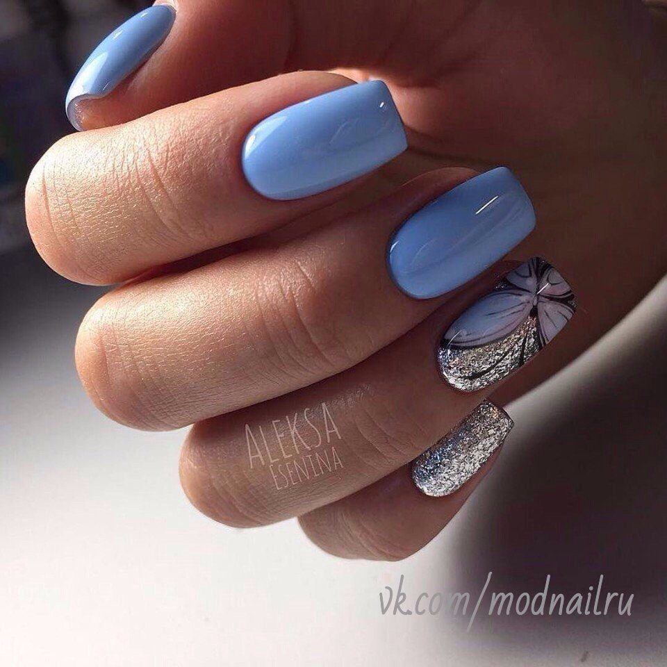 Очень нравится, когда голубой маникюр делают в зимний период и еще добавляют серебряные блестки, именно в этот период, он выглядит по волшебному.