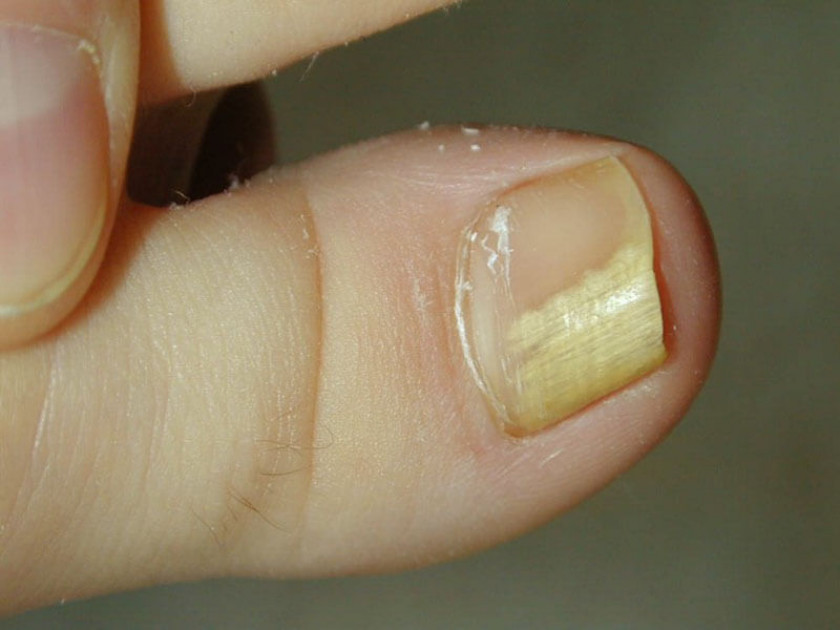 По внешним признакам его можно спутать с онихомикозом, псориазом, красным плоским лишаем и другими типами ониходистрофии. Поэтому нужна дифференциальная диагностика. На грибковую инфекцию указывает желтая, коричневая или зеленая окраска ногтя, его утолщение, неприятный запах, зуд кожи вокруг.