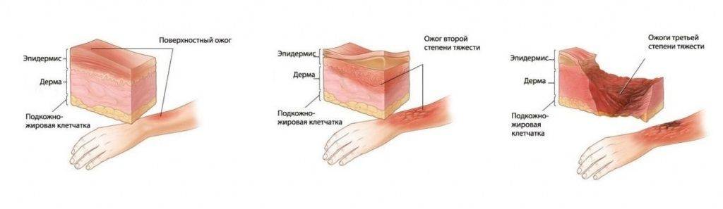 - длительность воздействия на кожу (чем дольше время контакта, тем тяжелее степень ожога);