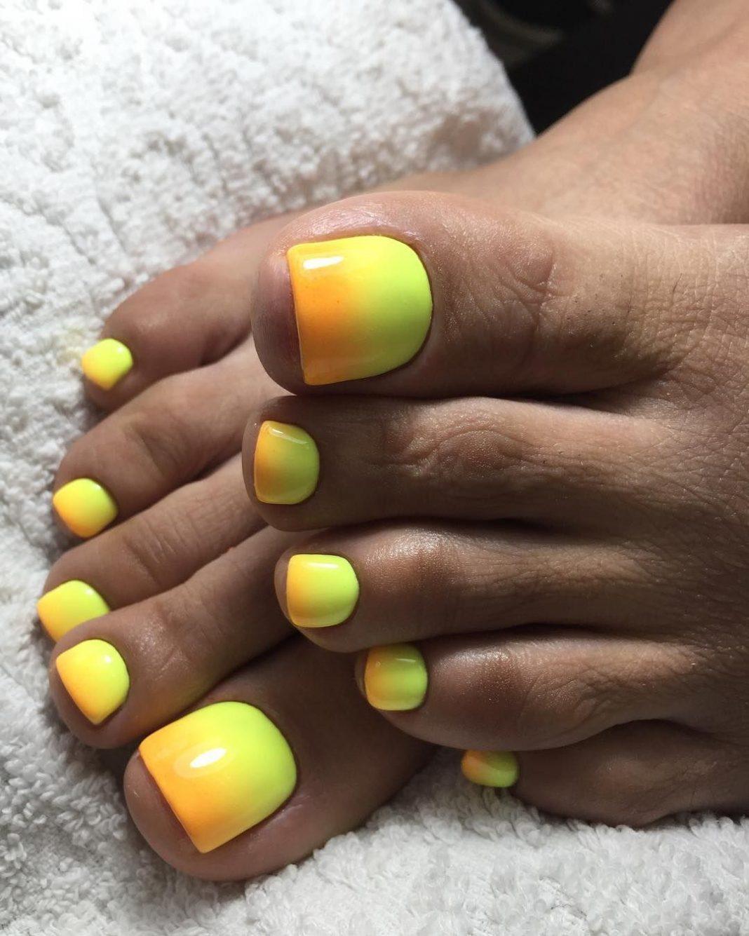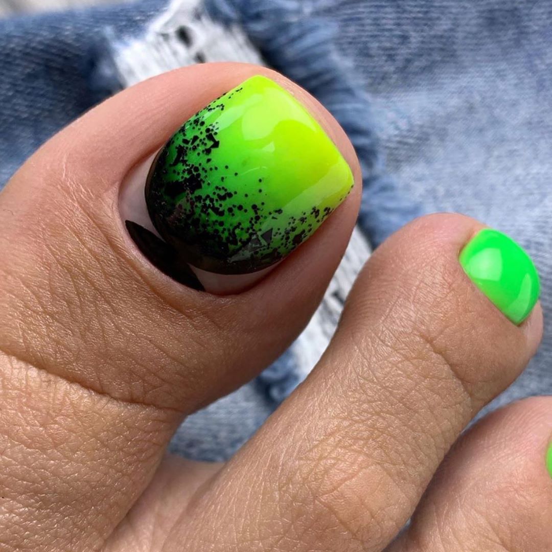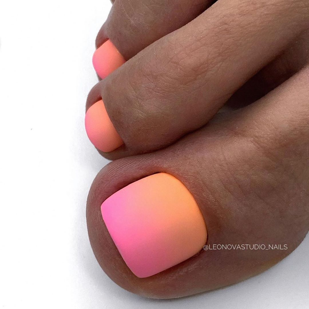 Модный педикюр с шеллаком в стиле омбре и градиент уже второй сезон не покидает пьедестал почета. Такое исполнение красиво смотрится как с яркими оттенками, так и с более темными.